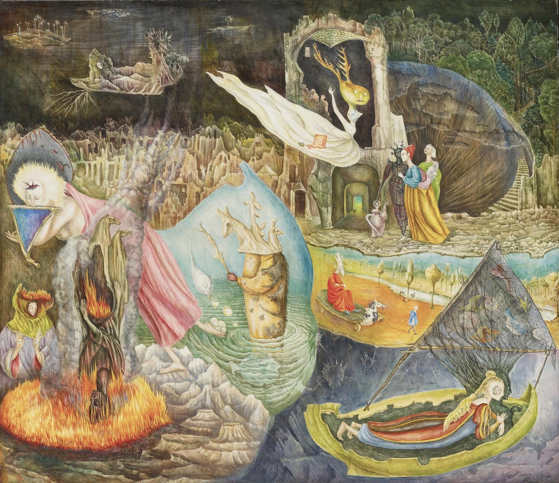 Leonora Carrington has inspired the main exhibition at Venice 2022, and her painting The Pleasures of Dagobert, 1945, is also on show the Peggy Guggenheim Collection