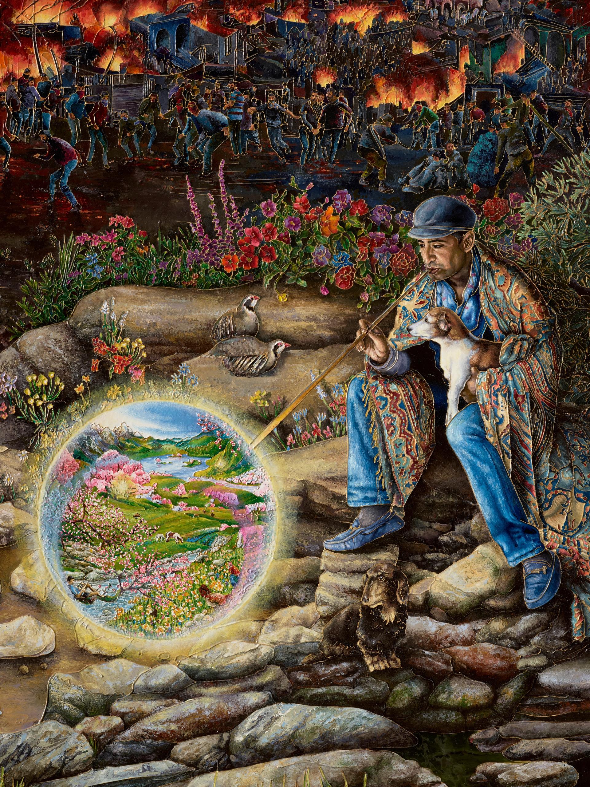 Detail from Raqib Shaw's La Tempesta (after Giorgione), 2019 – 2021 Image courtesy of the artist and White Cube. Photo: White Cube (Ollie Hammick)