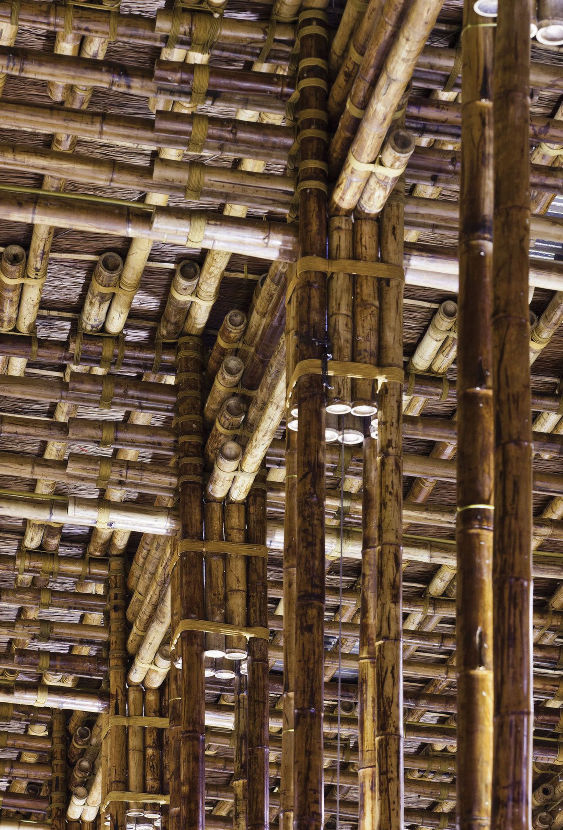 Complex and intricate bamboo structure of a restaurant designed by Vo Trong Nghia in Vietnam's Son La province. Photo: Hiroyuki Oko