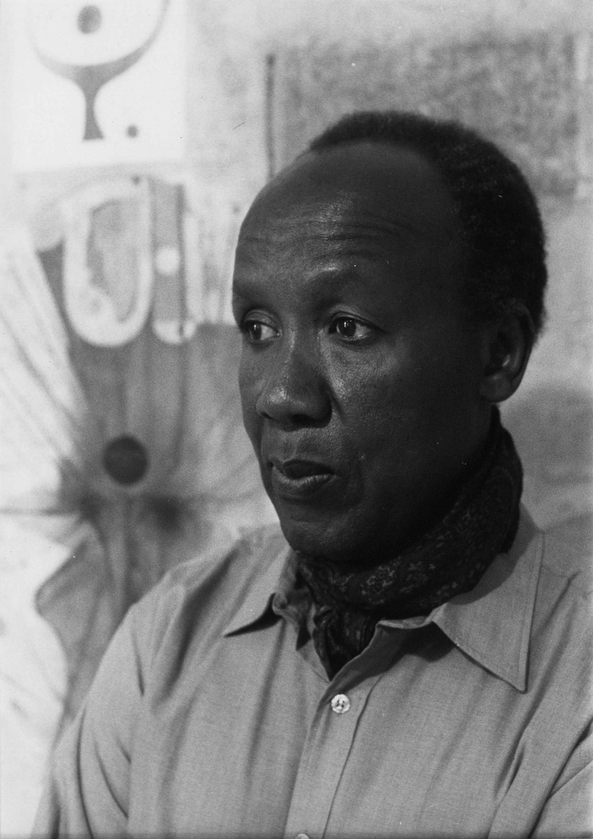 Ibrahim El-Salahi in the mid-1960s in front of his work The Last Sound