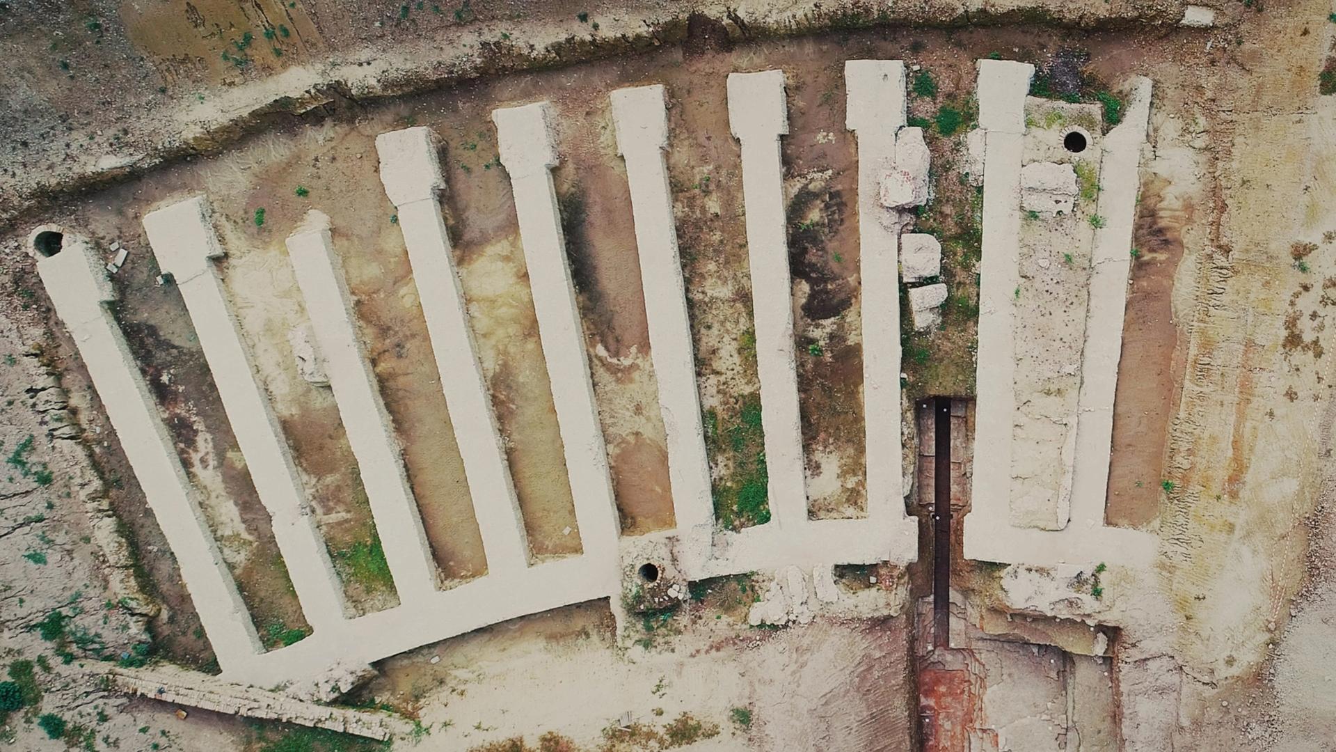 A birds-eye-view of the south east radial septa at the Roman amphitheatre in Milan Courtesy of the Superintendence of Archeology, Fine Arts and Landscape for the metropolitan city of Milan