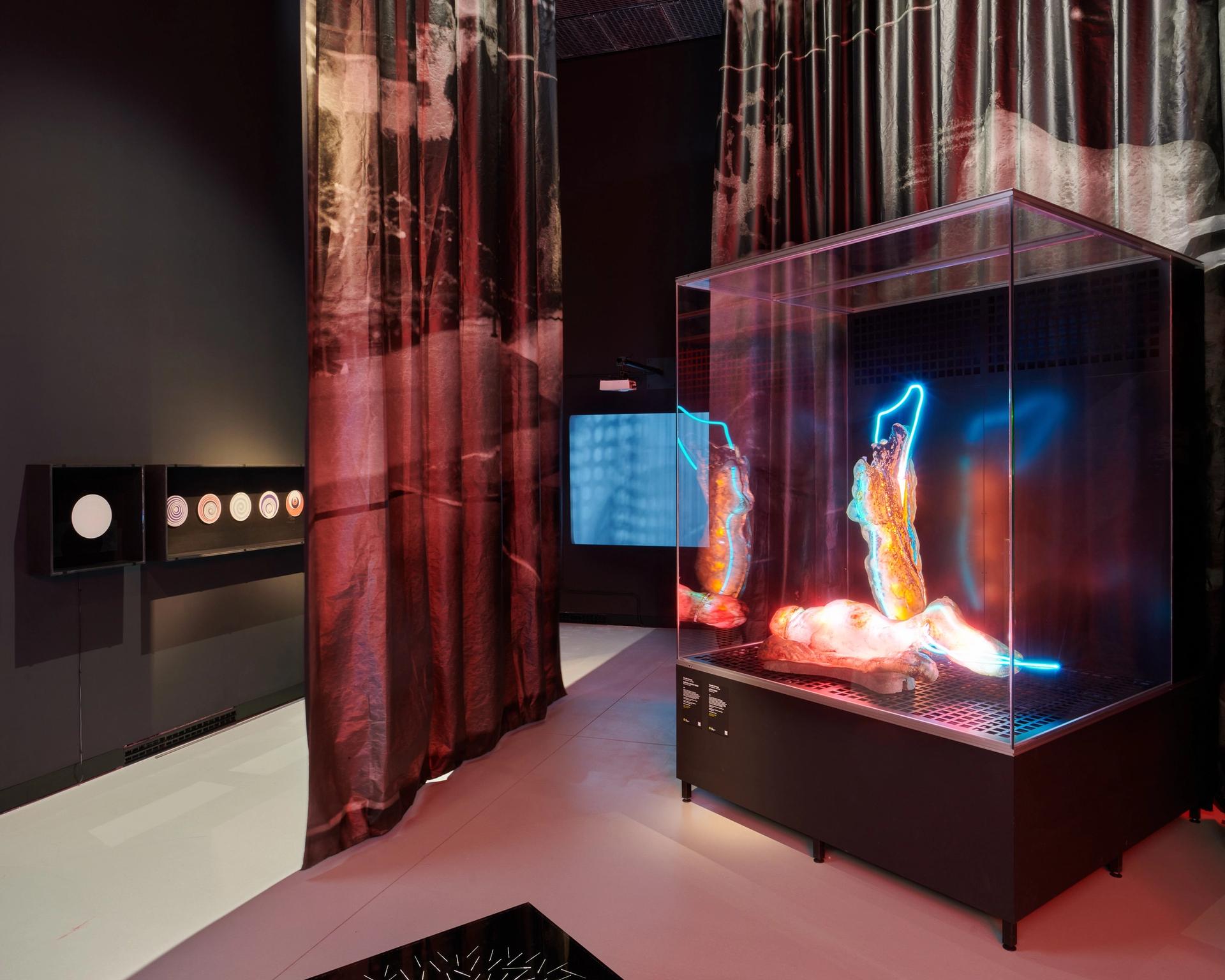 Installation view of Kinetismus: 100 Years of Electricity in Art at Kunsthalle Praha.