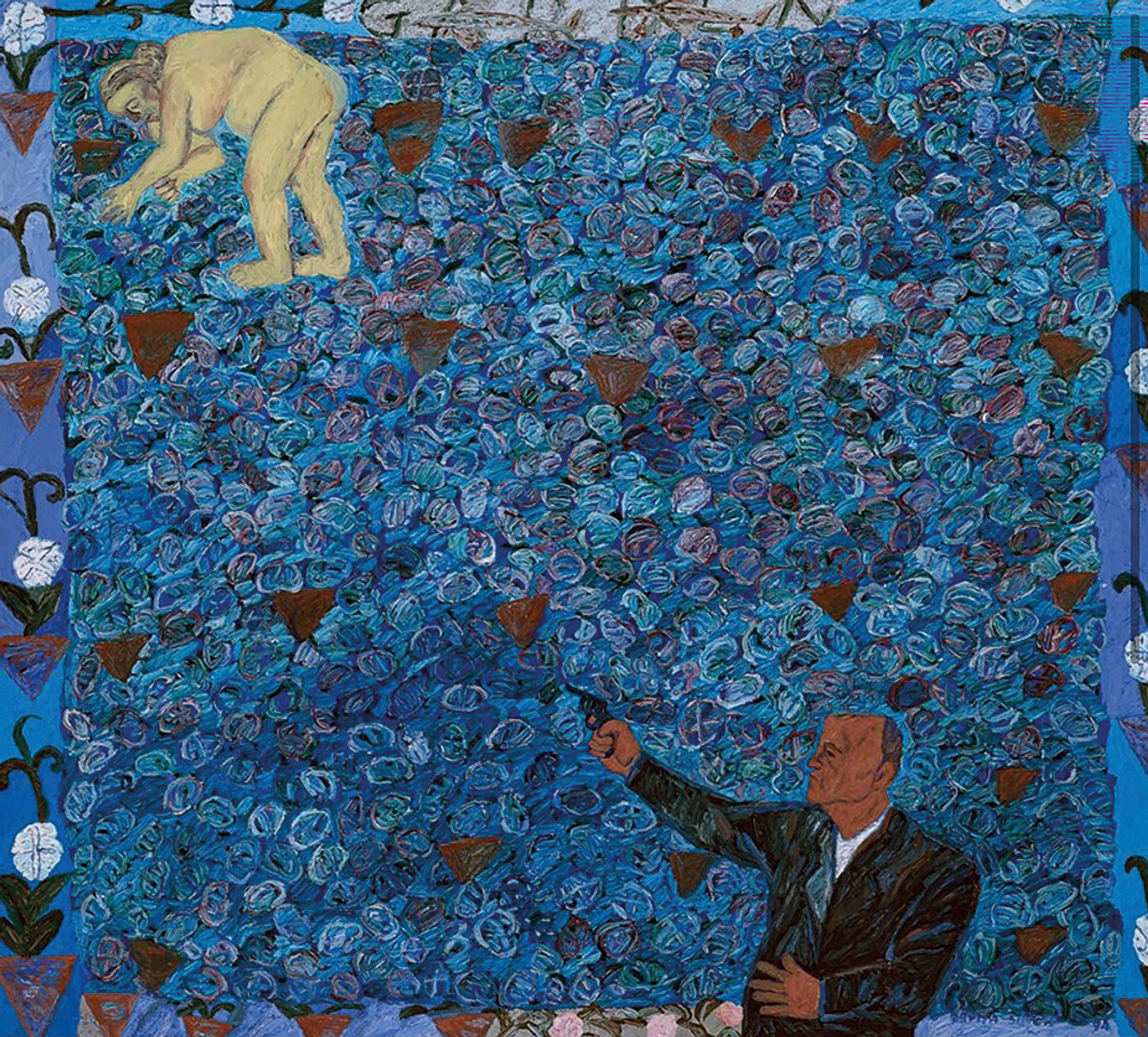 Arpita Singh, Woman Plucking Flowers (1994)