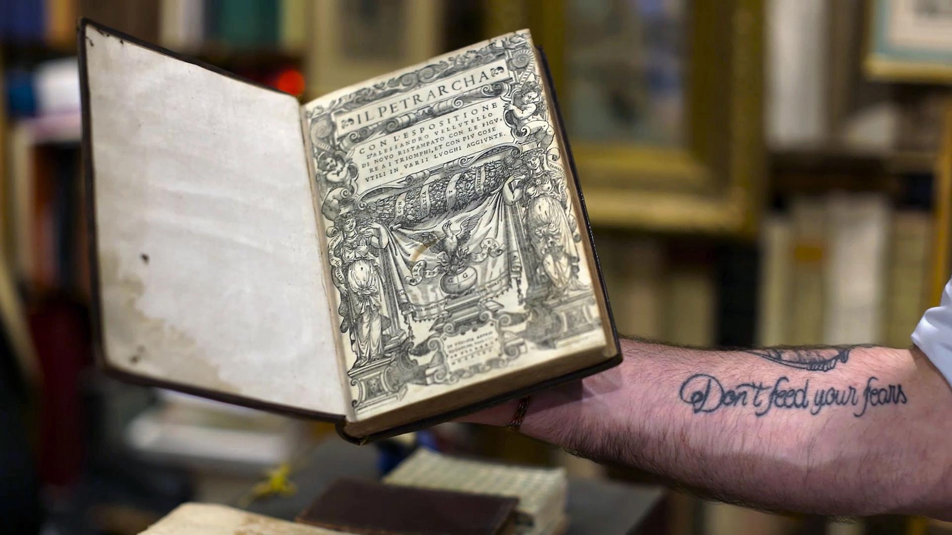A film still of a censored 16th century edition of Petrarch Courtesy of Shubigi Rao