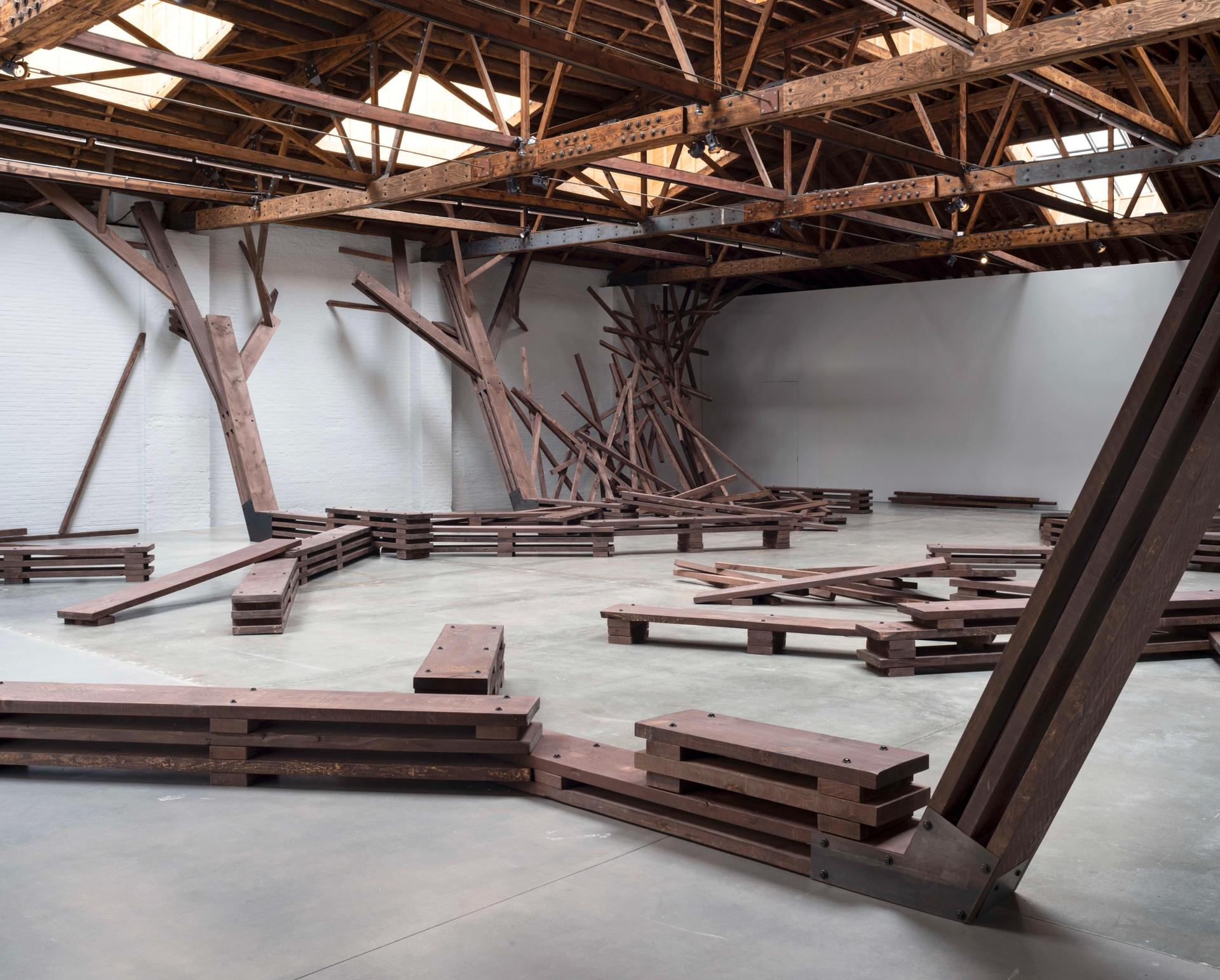 “Looking across these galleries, I was immediately reminded of a capsized ship,” Norment says. “I wanted to consider the architecture of the space, and also the fact that Dia used to be a shoreline, then a landfill. The work aims to bring up ideas around human migration, and the relationship between humans and the environment.”