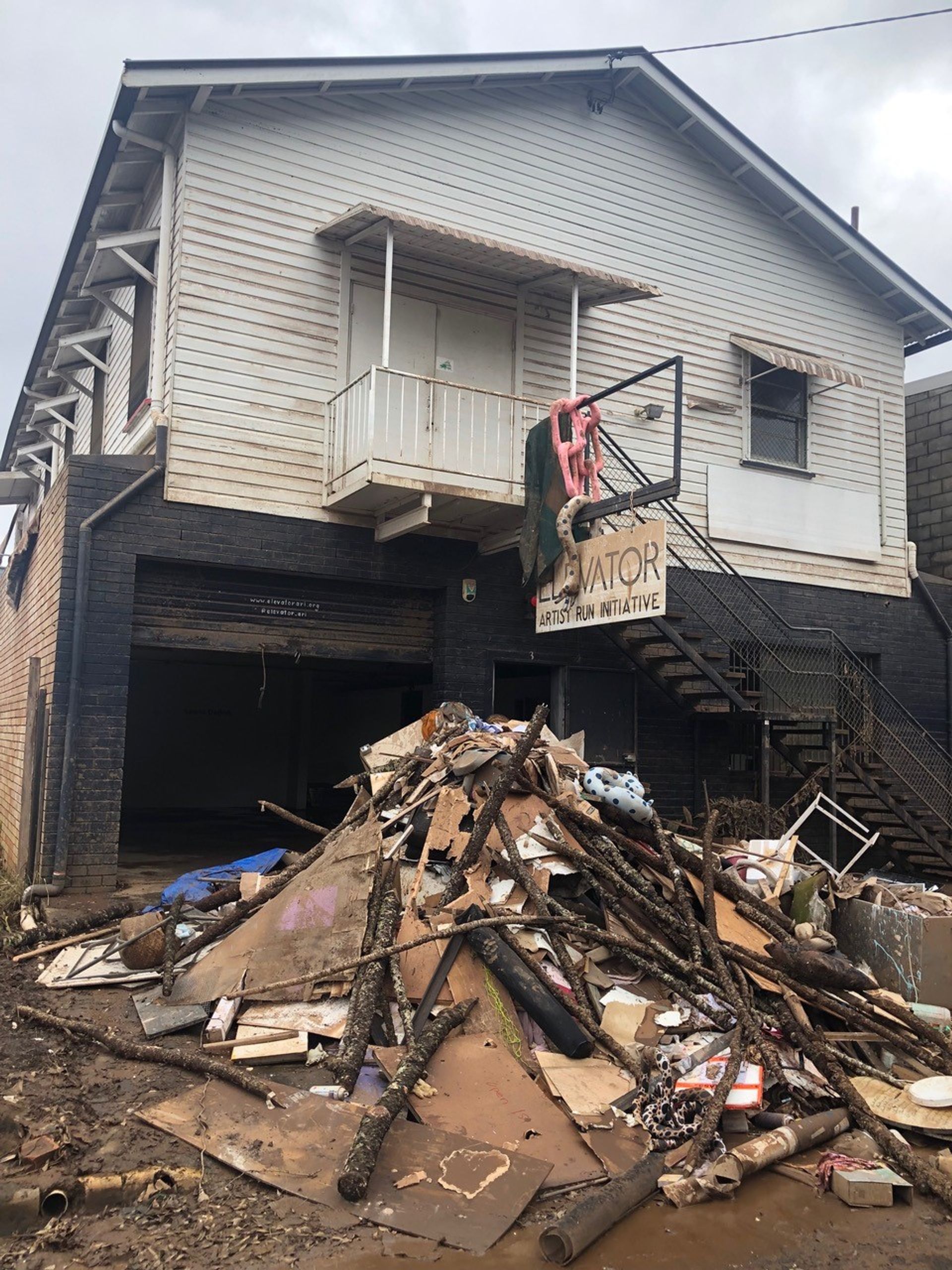 According to Jane Fuller, the executive director of Arts Northern Rivers, an arts advocacy organisation based in Lismore, the “epicentre of the floods” was the cultural precinct, which houses Lismore Regional Gallery, the artist-run Elevator gallery and studios as well as the library and the music conservatorium.