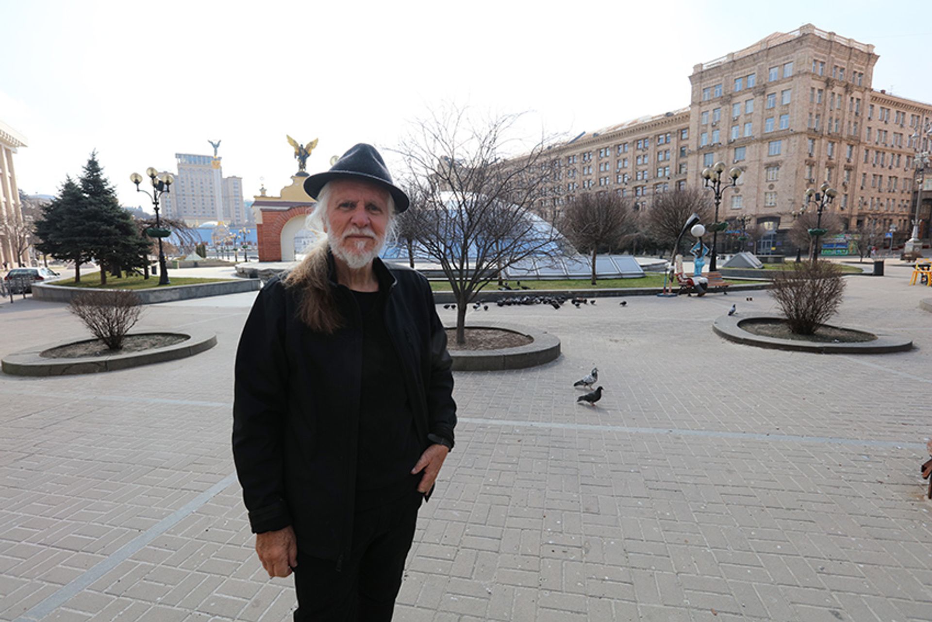 George Gittoes in Independence Square (known as Maidan), Kyiv. Photo by Hellen Rose