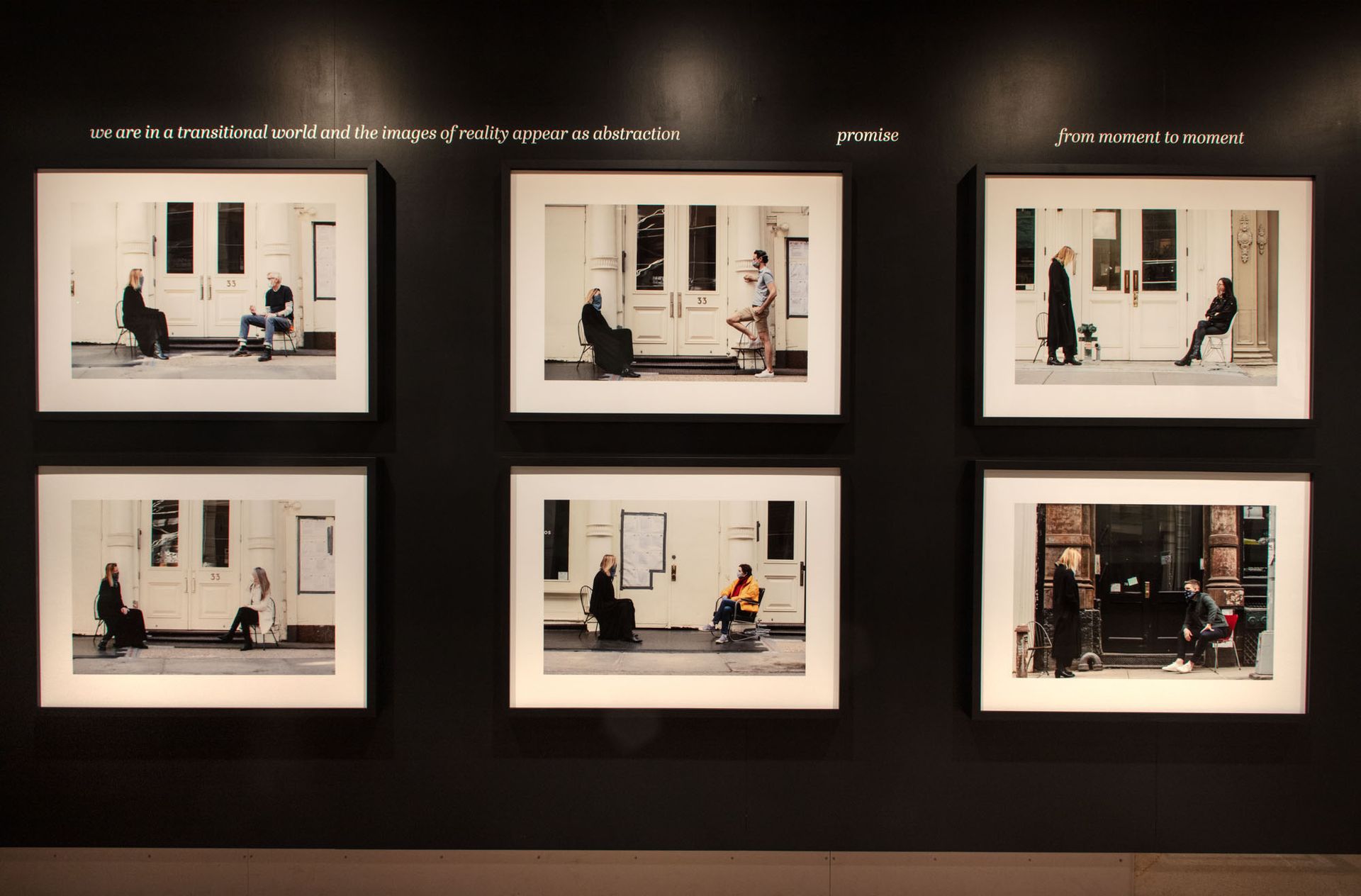 In March 2020, photographer Renate Aller found herself among the group of New Yorkers who decided to ride out lockdown in the city. By April, her urge to connect with others took over and she began inviting friends, one at a time, to join her on the sidewalk in Soho, all from six feet apart. Photographing each of her encounters, many of which were the first social interactions her friends had experienced since before lockdown, Aller produced a series of images that capture the anxiety and uncertainty of the early pandemic days, as well as the resilience of New Yorkers. A monument to how society adapted, the exhibition offers a cautious dose of optimism that we are far enough from the dark days of the pandemic to be able to meaningfully reflect on them, but simultaneously reserves space for losses, changes and lingering uncertainty.