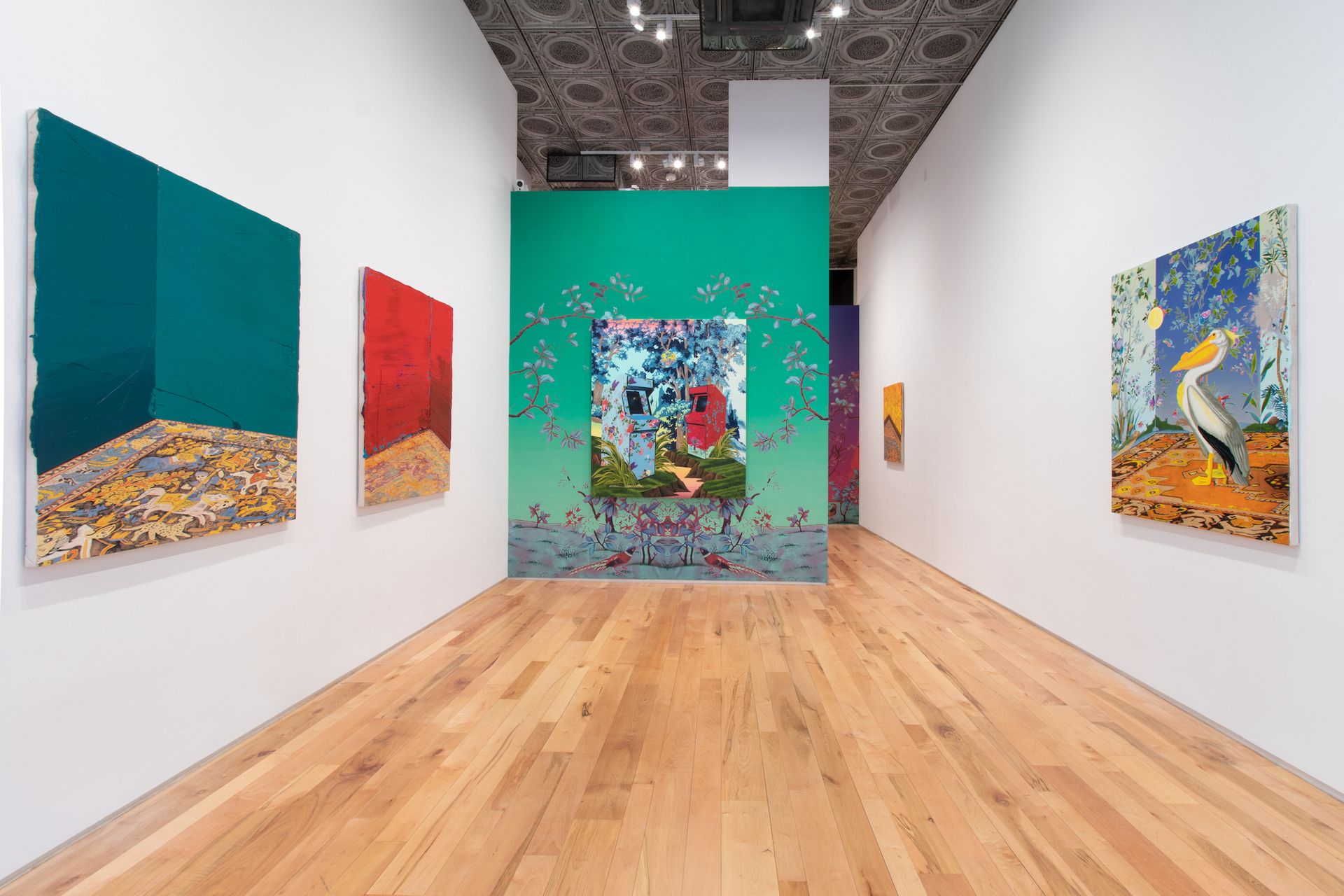 Unexpected, dreamlike surprises await in Stephen Thorpe’s so-called “corner paintings”. Portraits of interior corners that the artist developed during isolation, the works weave in strange, out-of-place elements like arcade games and Audubon-esque birds. The wall colours, carpets and room contents differ in each work, but there is a sense of familiarity connecting all the paintings, as if each one depicts the same vantage point constantly reimagined. Thorpe’s corners represent all of the interior views that became our habitats during lockdown. They also, as the exhibition title indicates, mark physical boundaries as spaces of safety but also entrapment. That may sound bleak, but Thorpe’s works also exemplify the unbound potential of our own imaginations.