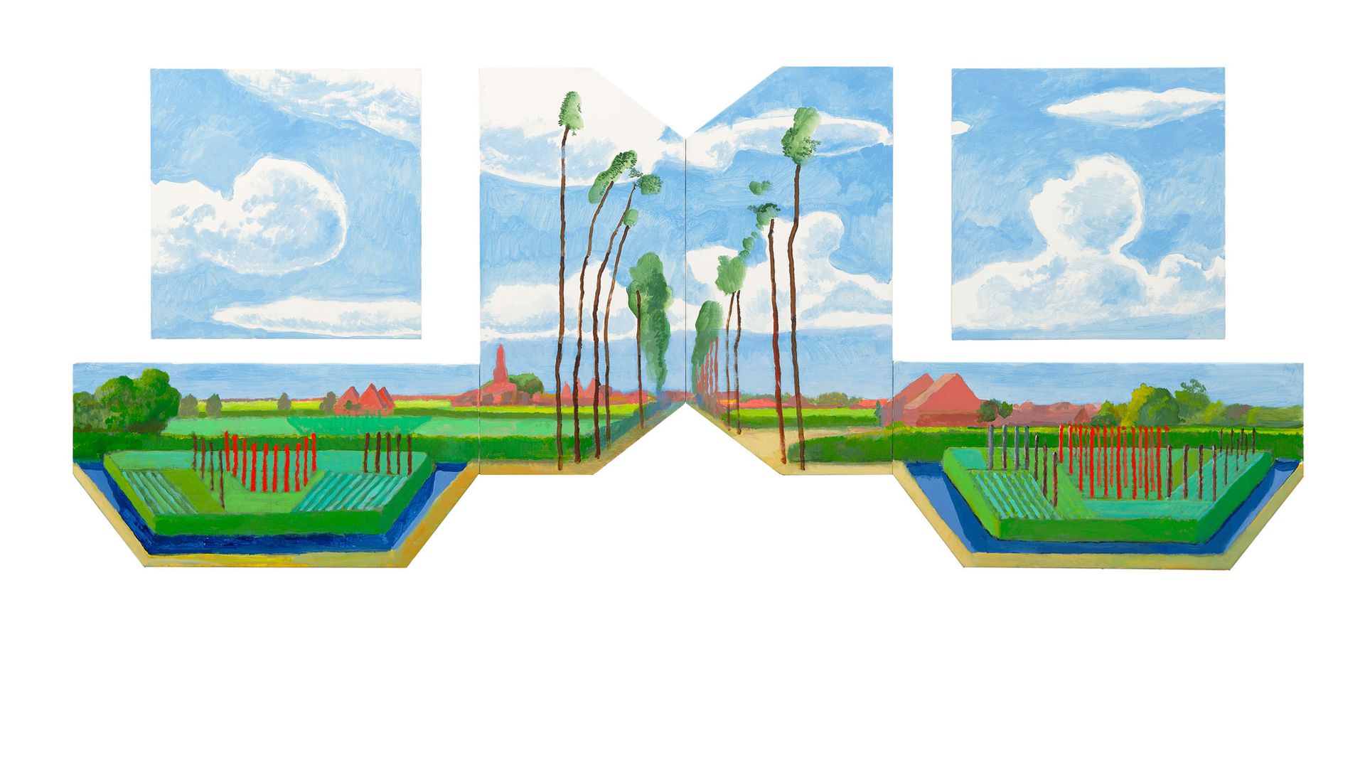 David Hockney's After Hobbema (Useful Knowledge) (2017) is based on Hobbema’s 17th century painting The Avenue at Middelharnis © David Hockney