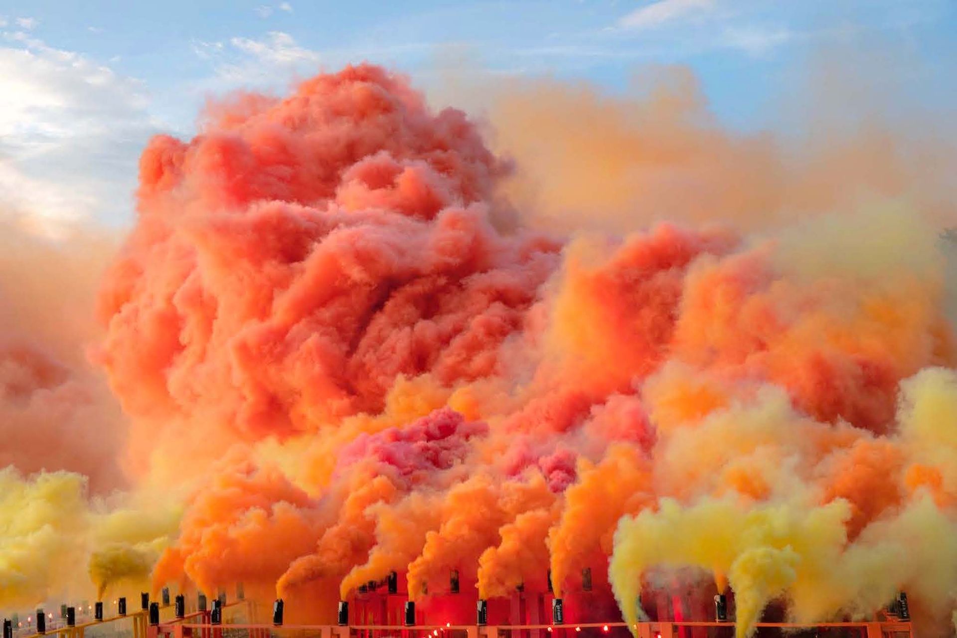 Judy Chicago in collaboration with Pyro Spectaculars by Souza, Diamonds in the Sky, 2021. Fireworks performance in Belen, New Mexico © Judy Chicago/Artists Rights Society (ARS), New York; © Donald Woodman/ARS, New York