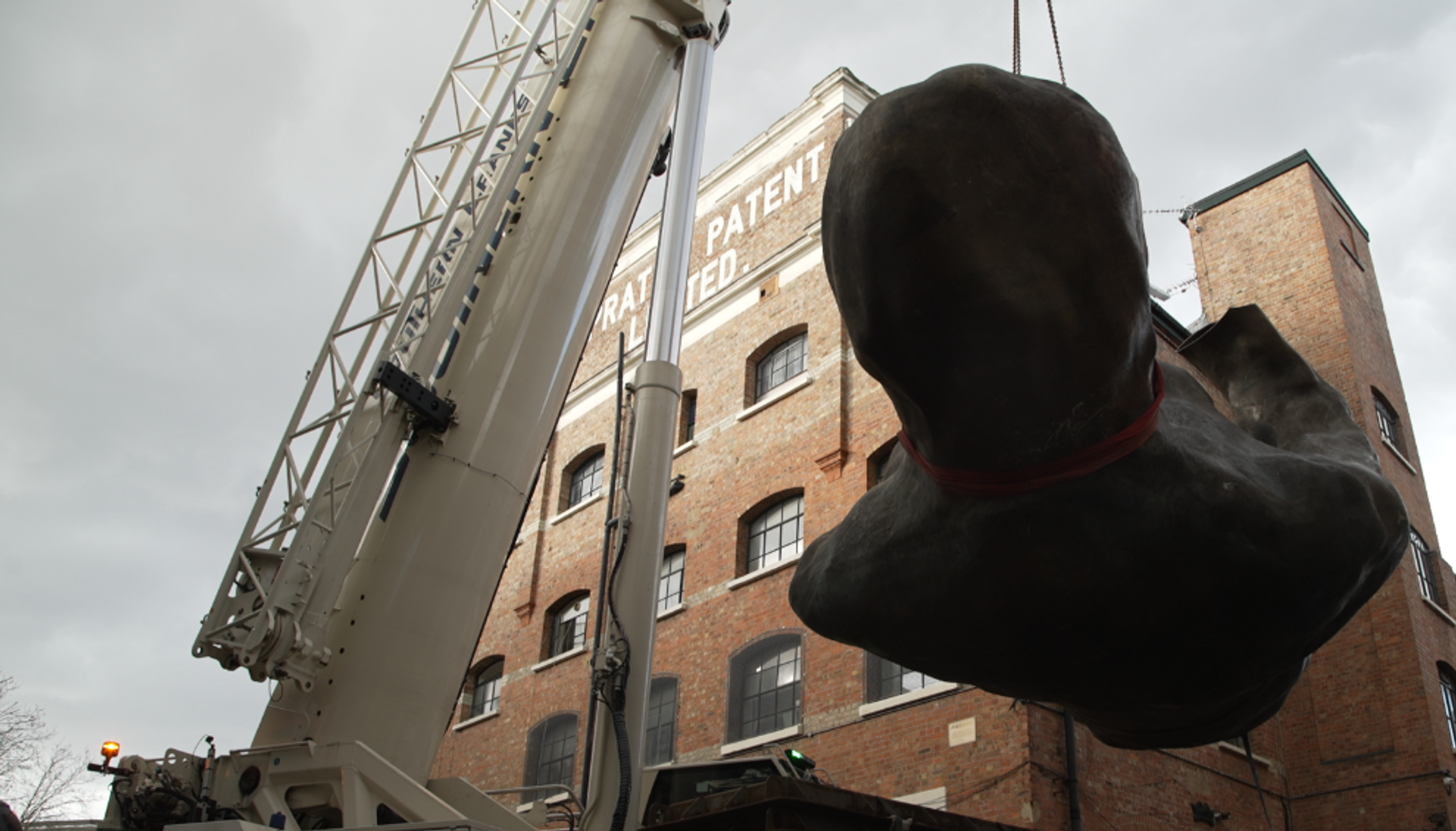 One part of The Mother sculpture being lifted in London Photo: John O'Rourke