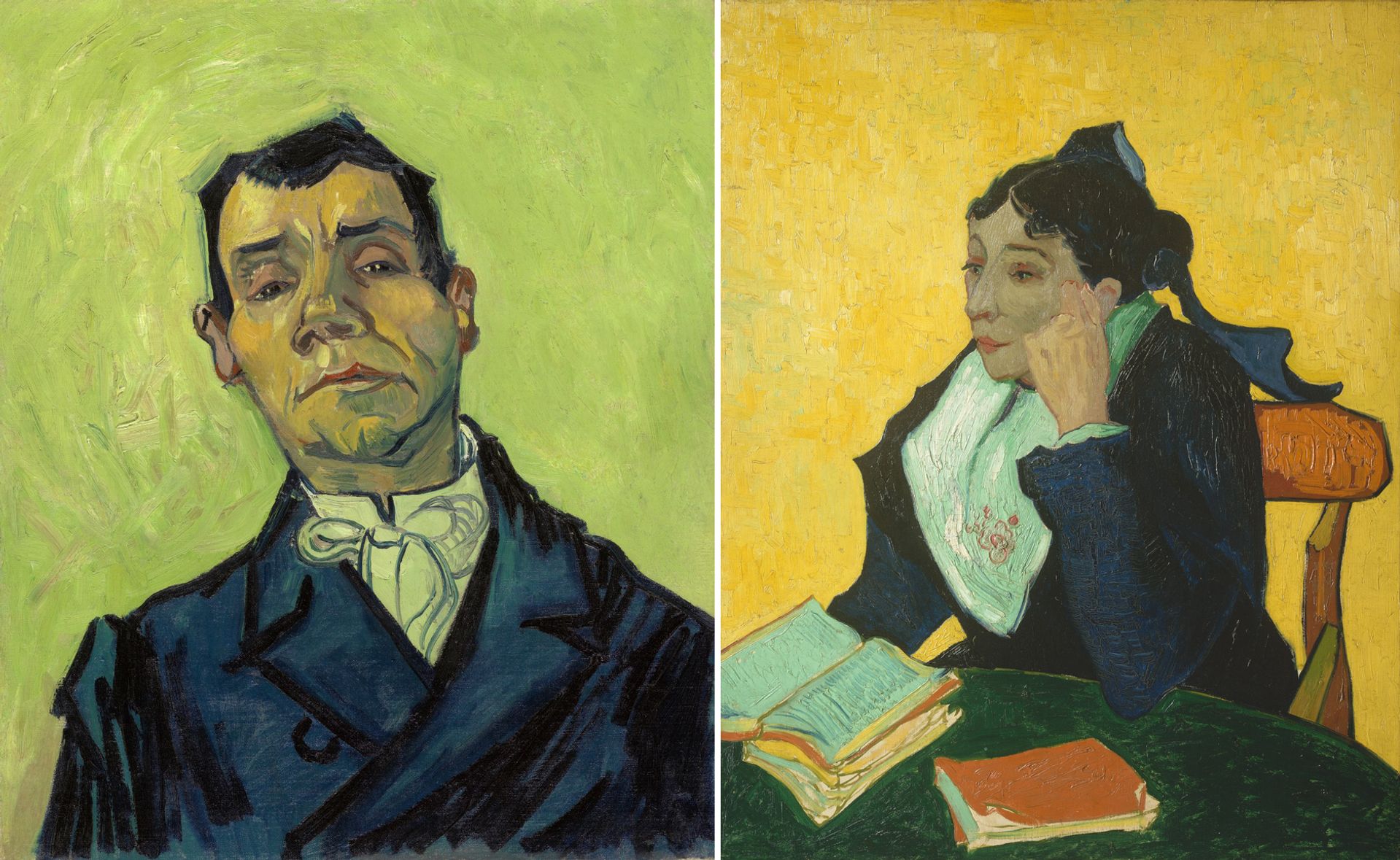 Van Gogh’s Portrait of Joseph Ginoux (1835-1902) (probably November 1888) and L’Arlésienne, Portrait of Marie Ginoux (1848-1911) (November 1888) Credit: Kröller-Müller Museum, Otterlo and Metropolitan Museum of Art, New York
