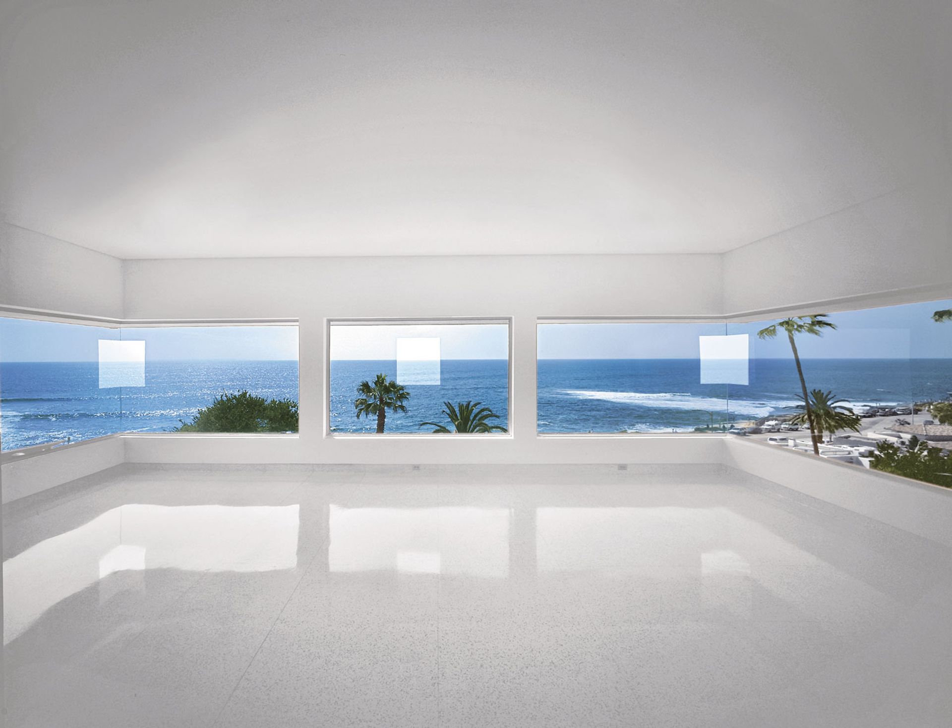 Robert Irwin made the site-specific installation 1°2°3°4° in 1997 by cutting apertures into the museum's windows overlooking the Pacific Ocean Photo © 2018 Robert Irwin / Artists Rights Society (ARS), New York