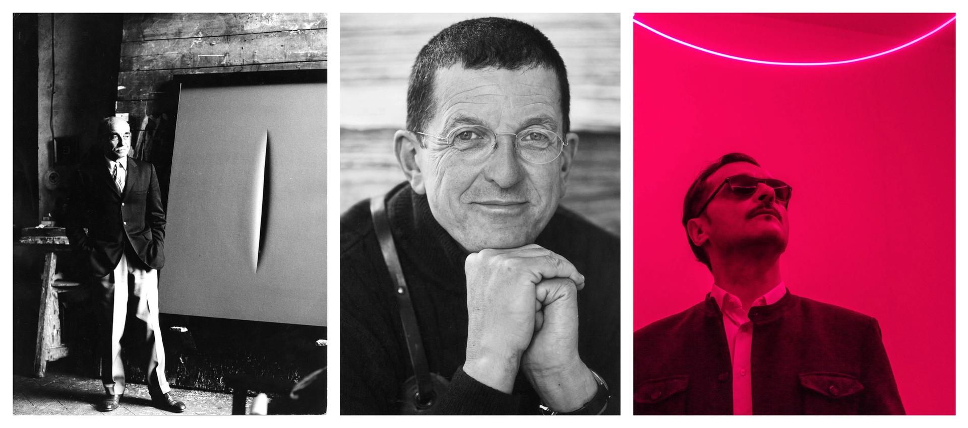 Artists (from left) Lucio Fontana and Antony Gormley, with curator Luca Massimo Barbero
