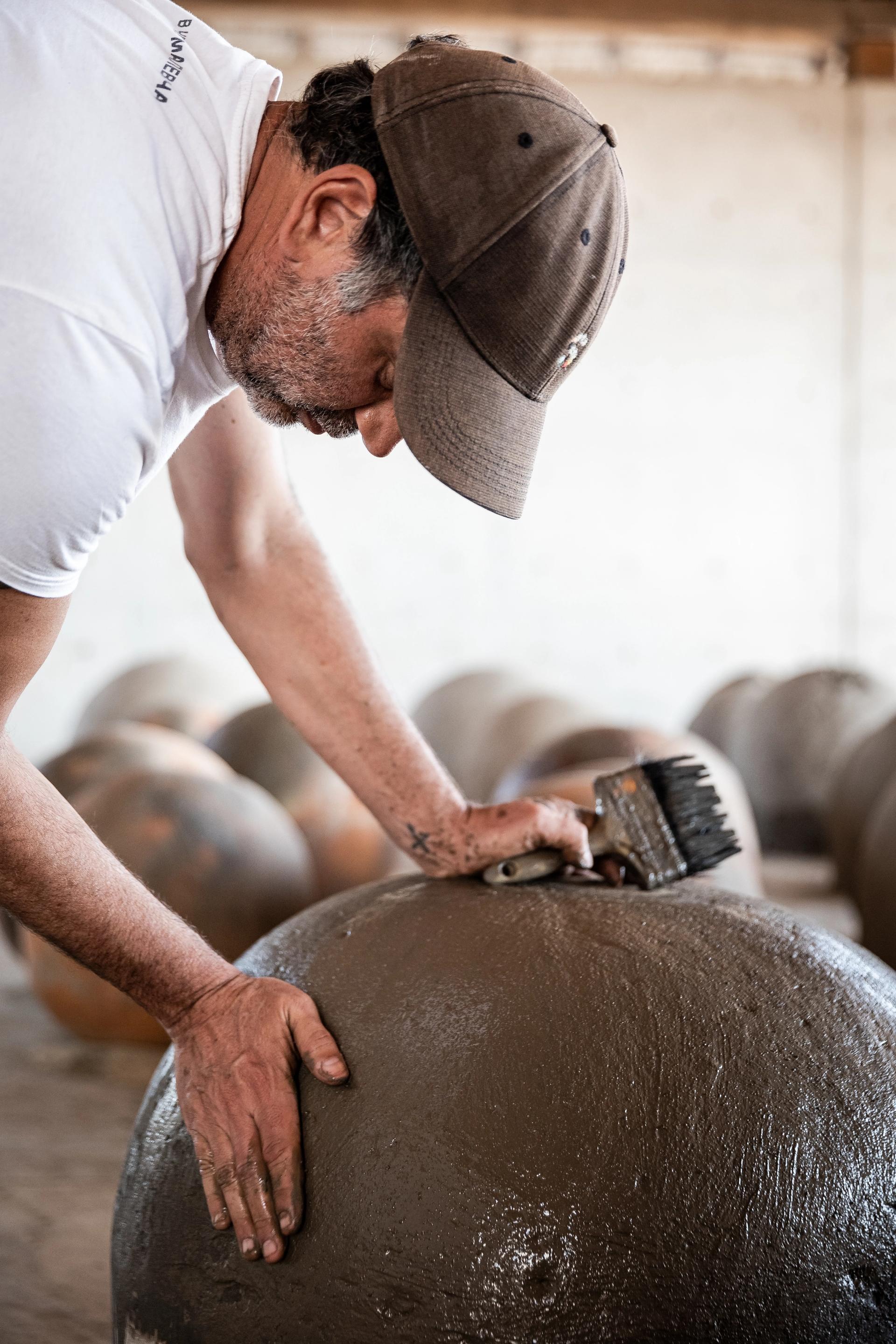 The Mexican artist Bosco Sodi has been in Venice since February, turning part of the ground floor of the Palazzo Vendramin Grimani into a temporary studio. He has been producing his characteristic paintings using wood dust, cellulose pulp, glue and pigment, which will be exhibited in the imposing rooms of the piano nobile. Downstairs will be 195 spheres of red Mexican clay.
