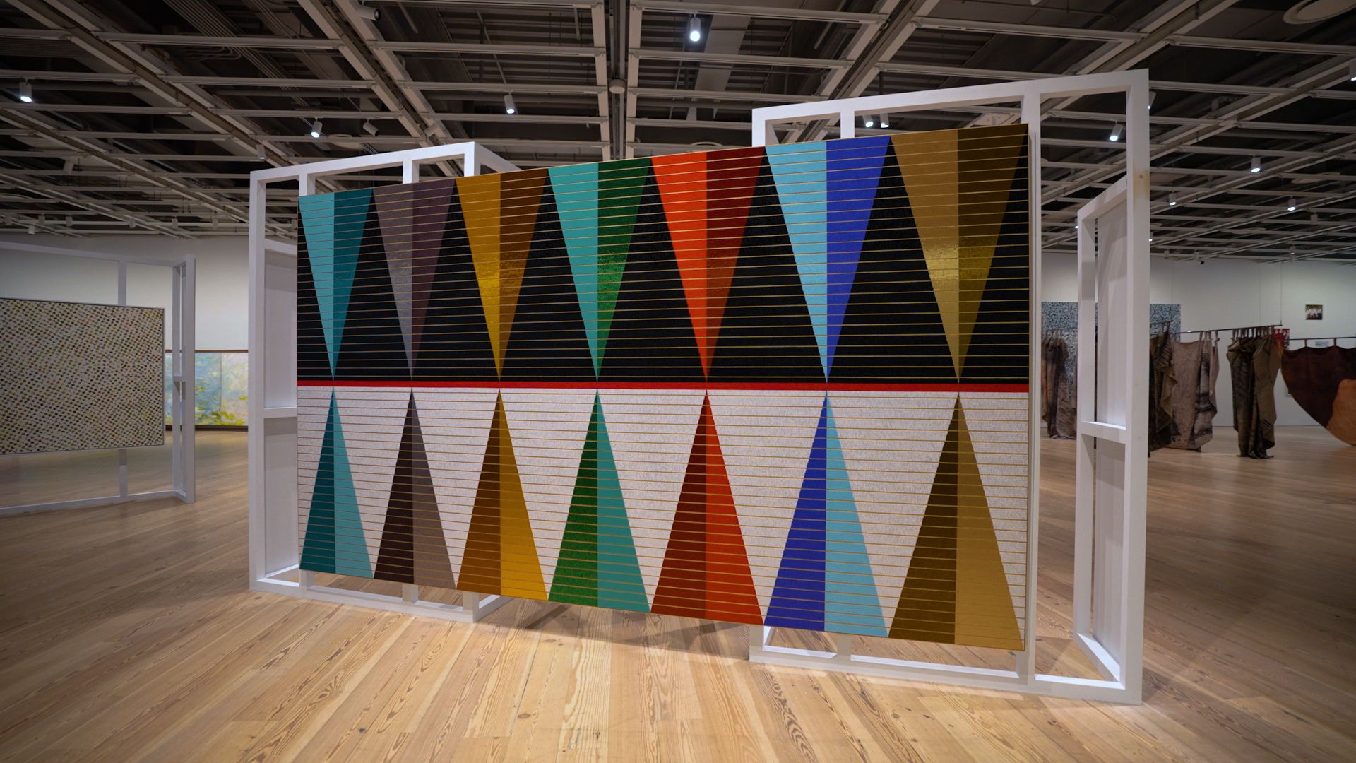 The Lakota artist Dyani White Hawk and a team of assistants have created this captivating abstract geometric work that draws on cross-cultural themes. The glass beads used in the work “have become synonymous with Plains artwork but were trade items that came through relationships with non-Native people” in the mid-1800s, the artist explains, offering an exciting new medium for artwork that was previously made painstakingly with porcupine quill. The work aims to highlight the shared histories of Native and non-Native art. “Some of the most famous white male painters who are lifted up as the founders of abstraction were looking to Indigenous art and collecting that art because they recognised the strength and agency and beauty and expertise of that work,” she says. “My work is meant to pull out and honour those intersections.”
