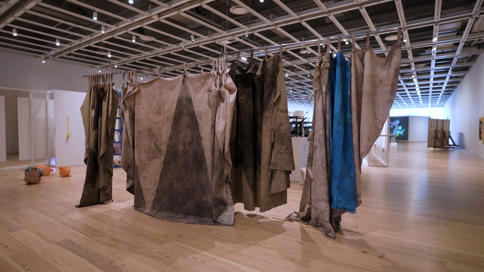 The Cree artist Duane Linklater has created richly saturated tapestries, what he envisions as non-functional tipi covers, using pigments traditional in Indigenous art, including sumac, charcoal and cochineal. The works will be moved throughout the biennial, allowing repeat visitors to experience them anew. While the works reference aspects of Cree language and cultural elements, they also stand alone as powerful abstract pieces. “Abstraction provided me with self-determination and free will,” the artist writes in a statement. “It was liberating. I don’t find freedom in other forms. People like to have an answer before they have the experience. Abstraction doesn’t offer you that.”
