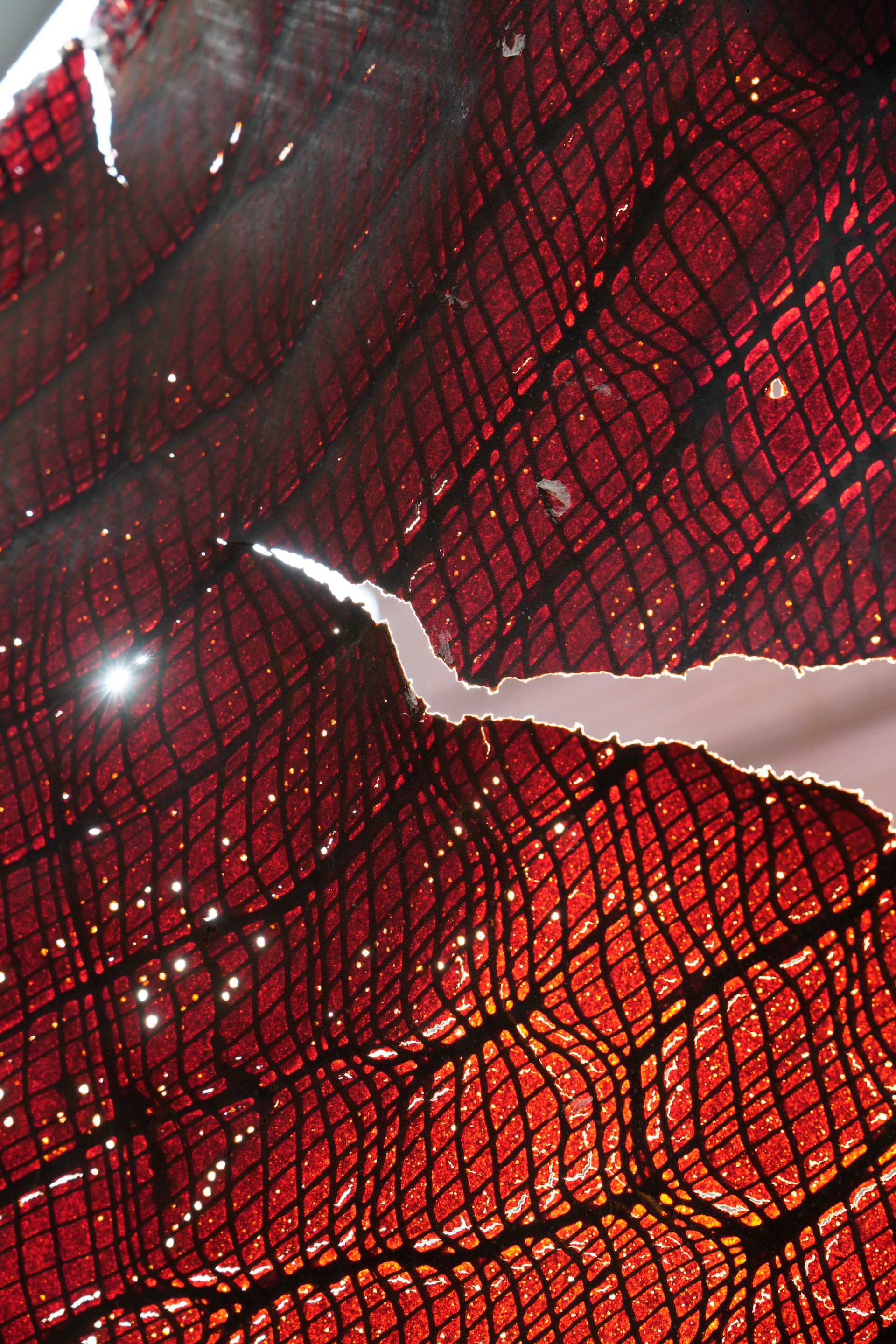 Each piece is five meters tall and resembles a cocoon standing on end, although the name “aguahoja” means “water leaf” in Spanish. They are made of bio-composite panels inserted into a polymeric scaffold and were 3-D printed at labs at the Massachusetts Institute of Technology (MIT), where Oxman taught in the Media Arts and Sciences Department. During a Zoom interview, Barger holds up a sample panel—it’s thick, brown and fibrous, like coconut shell, with the outer layer made up of cellulose from leaves and chitosan from shrimp shells and the backing layer made of pectin from apples. While Aguahola III is meant to stay relatively pristine, Aguahola I is expected to unravel and decompose.