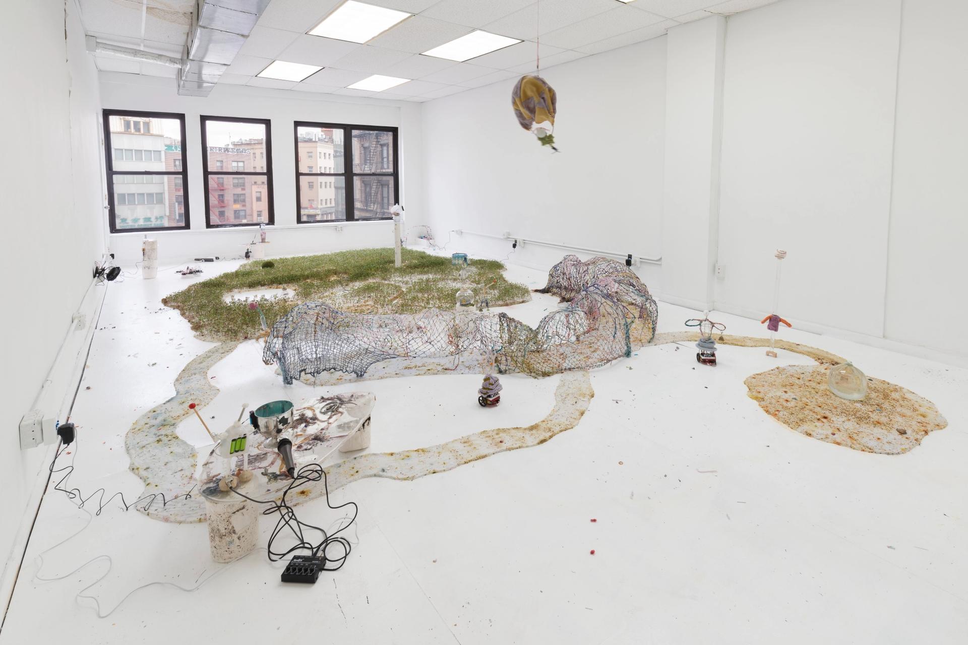 Mimi Park’s installation-as-solo show is an experience in a kind of Lilliputian post-humanism. Park’s resin-and-radish sprout topography sprawls across most of the gallery space, requiring viewers to tip-toe through its contours while avoiding the junk automatons—motorised toothbrush heads, vibrating salvaged snares—which rattle aimlessly throughout. An attached back room contains an index of tools and replacement parts that the artist periodically raids to restore her machines when they falter. Park’s project is an open circuit, moving through nodes of growth, collapse, repair and transfer in its investigation of the border between the living and the inert. “It was always interesting to me what is a human's threshold of perceiving anything as living beings,” Park told The Art Newspaper. “Every single being that was presented in the room contains a flow of energy, whether generated by themselves or powered by the help of others, and they also share lists of the same chemical components.” Microplastics accrue, weeds grow, electricity moves through a body like music. At a certain point, Park’s show seems to insist, it’s all just a transference of energy.