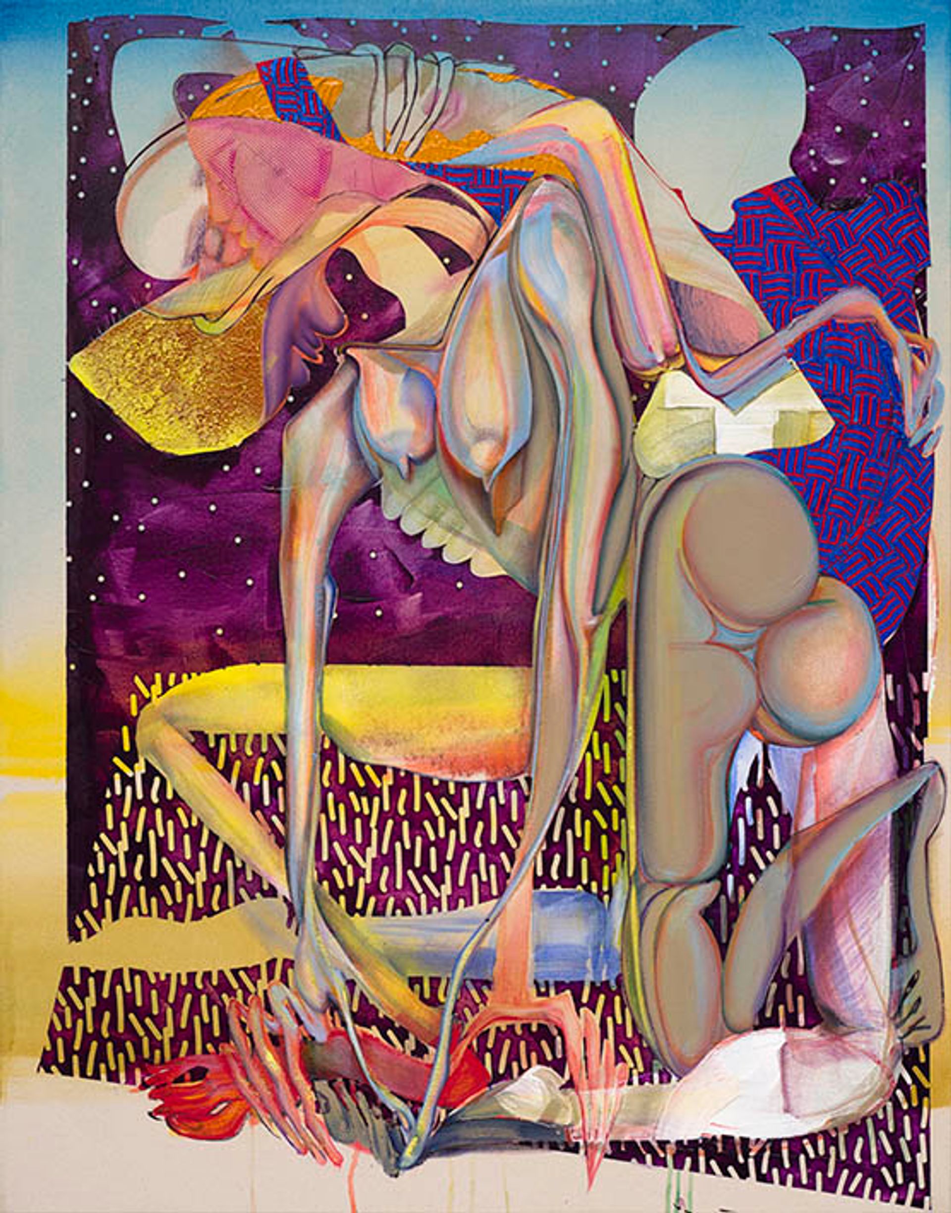 “I wanted to use this atmosphere and this fluidity to create an exhibition that talks about metamorphosis of the body, and of the definitions of humanity,” she adds.