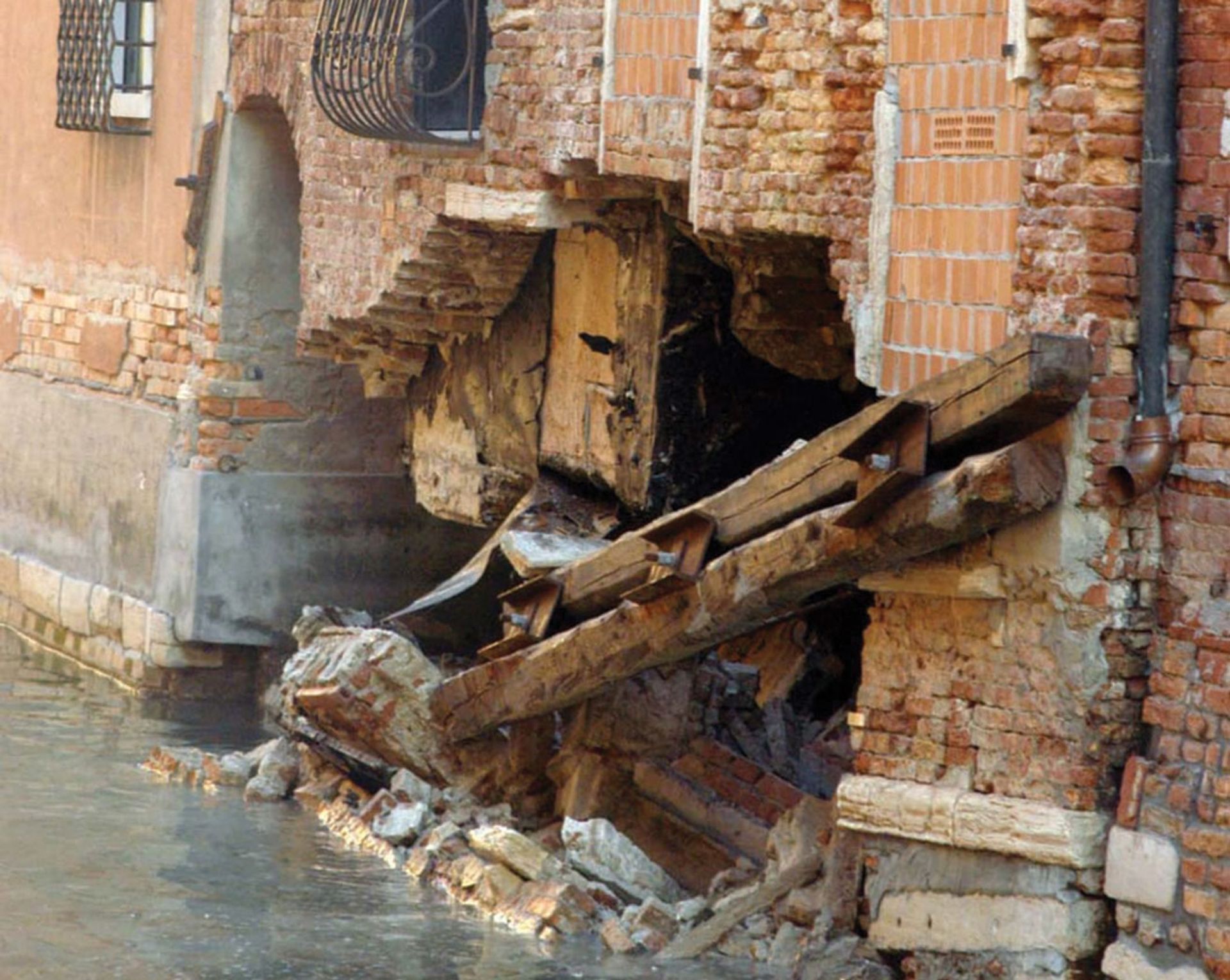 Venice will not disappear like Atlantis; it will rot and fall down. The water level has already overtopped the relatively impermeable stone bases of most buildings and is being absorbed into the porous bricks, fragmenting them and washing away the mortar. The damp has reached the upper floors and is rusting through the iron tie-bars that hold the houses together. This is unprecedented in the history of the city and will worsen rapidly as the water rises. Specialists like Mario Piana, who occupies the ancient position of Proto, architect in charge of St Mark’s Basilica, has been saying this for years, but as with all of the city’s long-term problems, no decision-maker is listening.