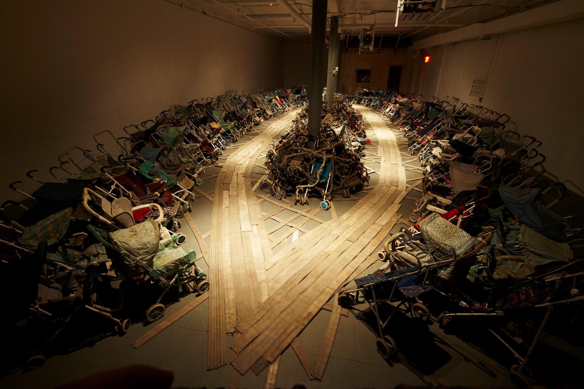 Ward often uses found materials, from baby strollers to baseball bats and shoelaces, and repurposes them in sculptures, wall-based text works and installations. They address present and historical social and political issues, including race and poverty, and deal directly with emotions like loss and hope.