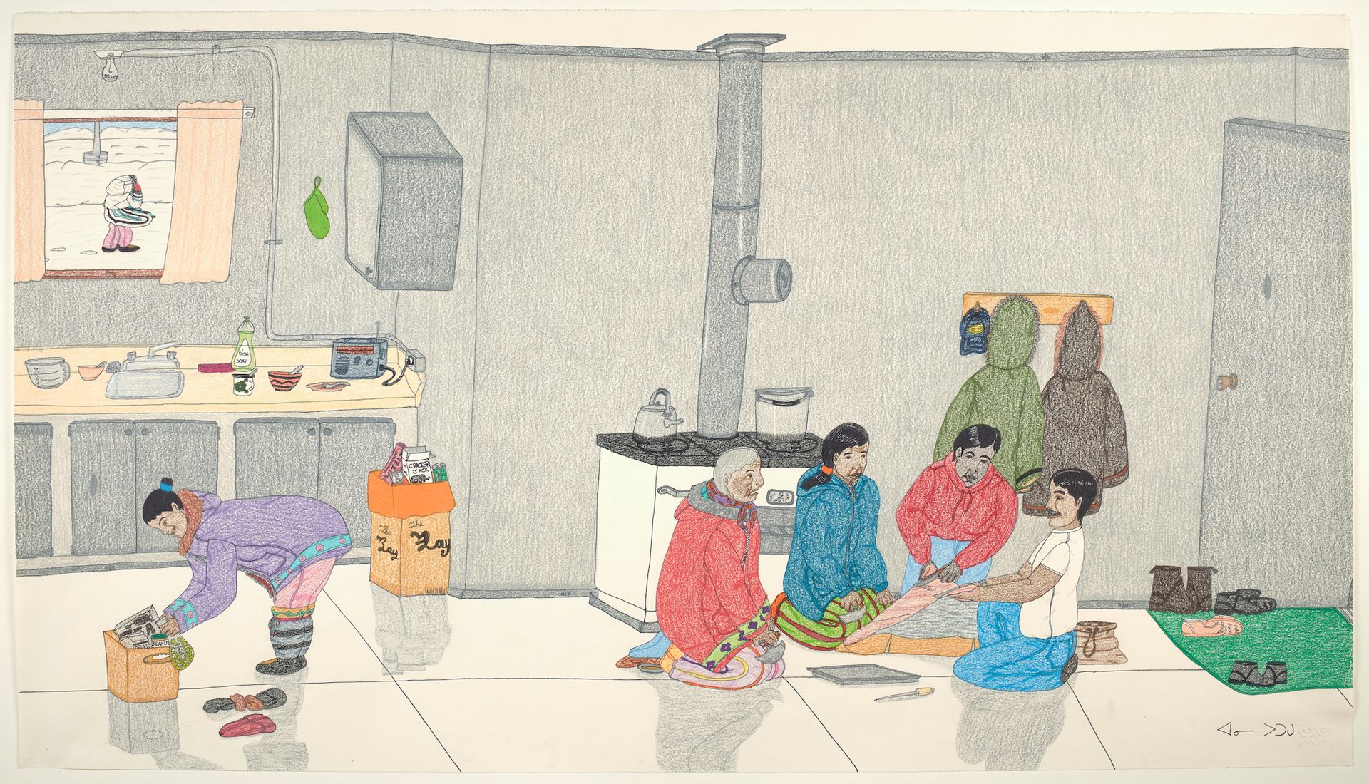 Annie Pootoogook, Skinning a Seal in the Kitchen, 2004-05, coloured and metallic pencil, black porous-point © Dorset Fine Arts 2006/54