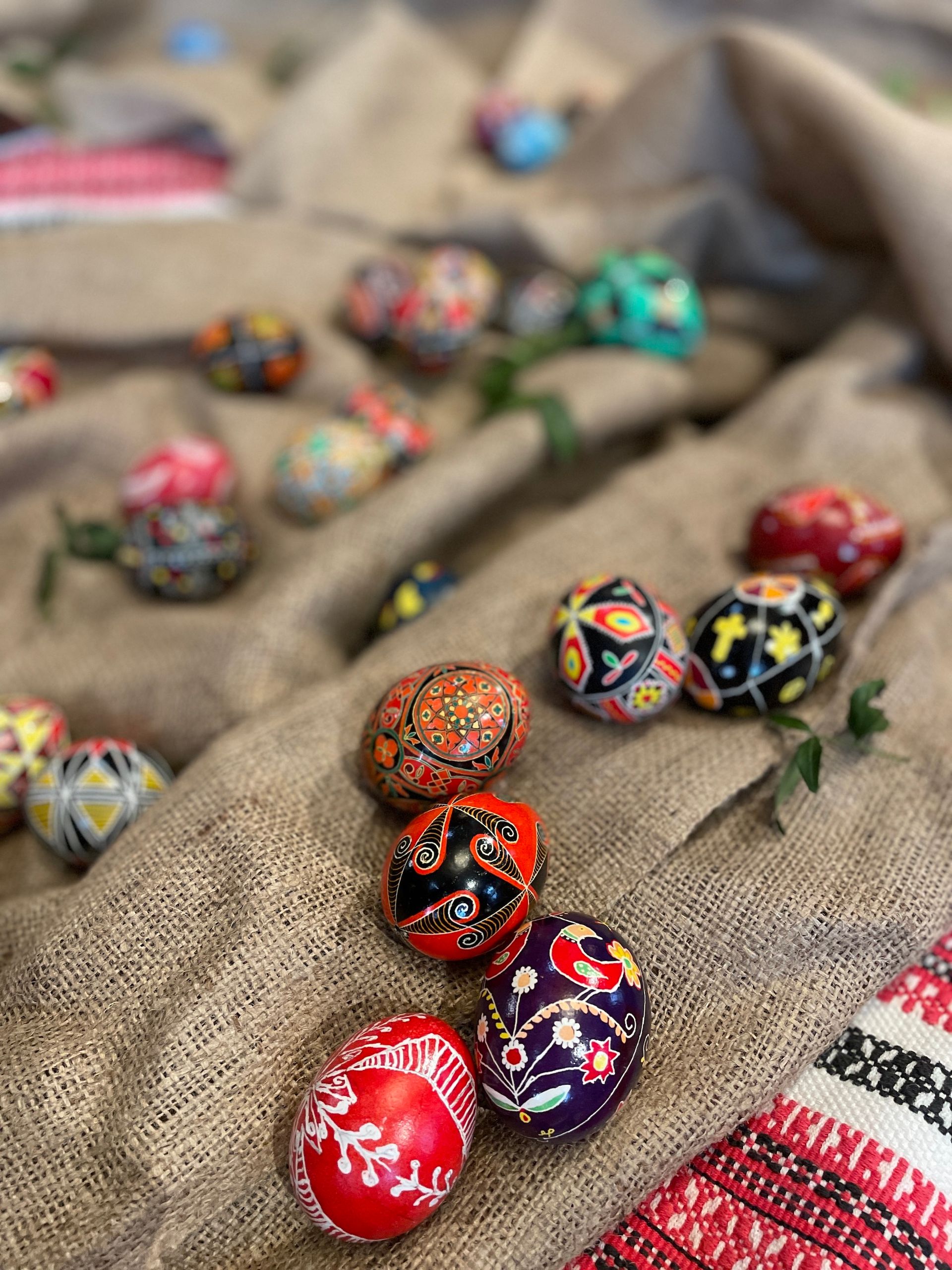 “They are not meant to be kept, they were used as good luck charms,” Zielyk says. “They were put in cattle feed so the cattle would be stronger, they would be buried in gardens so the harvest would be better, where the house was being built pysanky were put on each corner so the house would be free of evil spirits and so on. So these eggs will go back to Ukraine and symbolically help with the rebirth.”