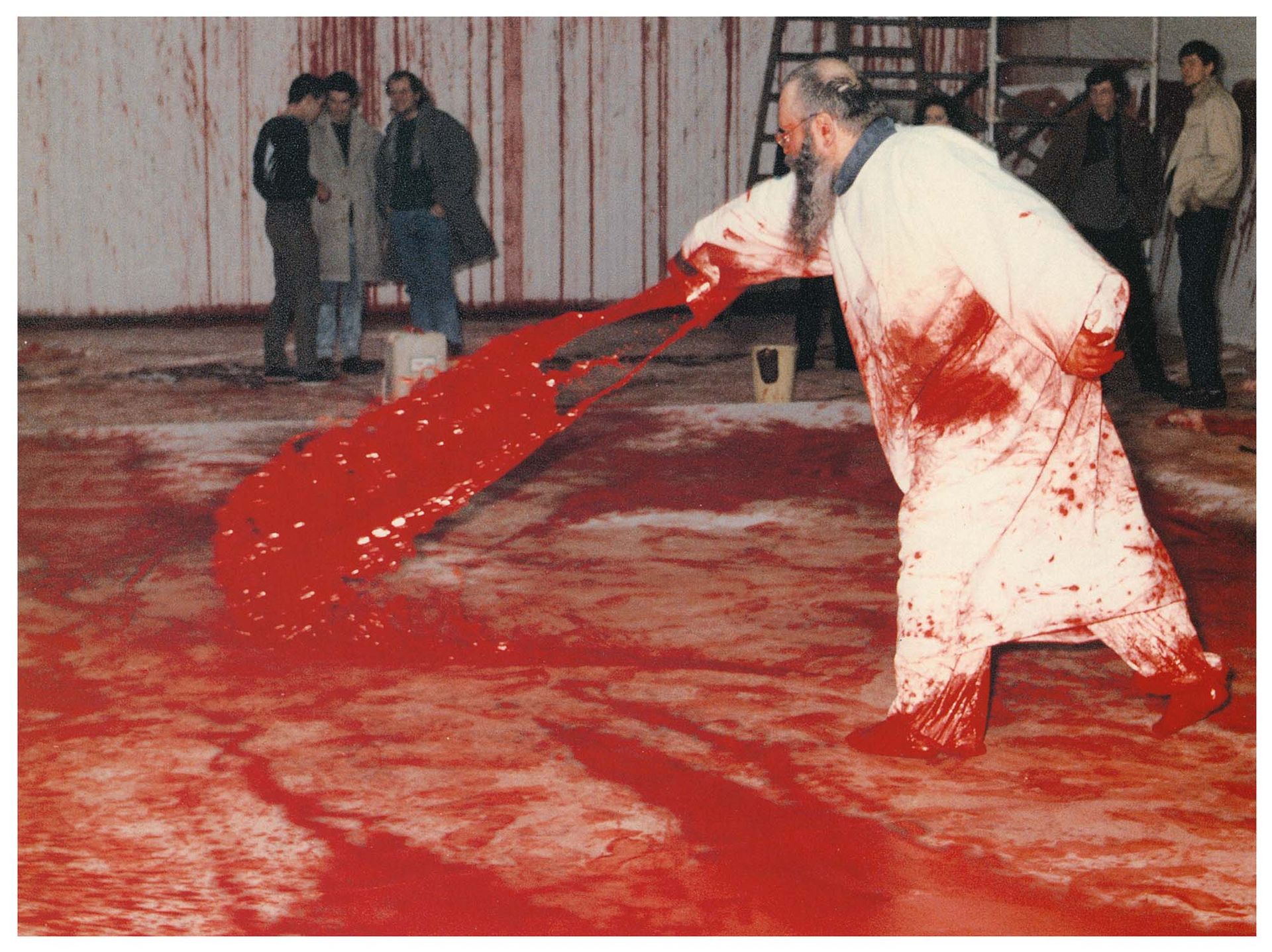 Hermann Nitsch, 20th painting action, 1987, Secession, Vienna. © Hermann Nitsch. Photo: Heinz Cibulka