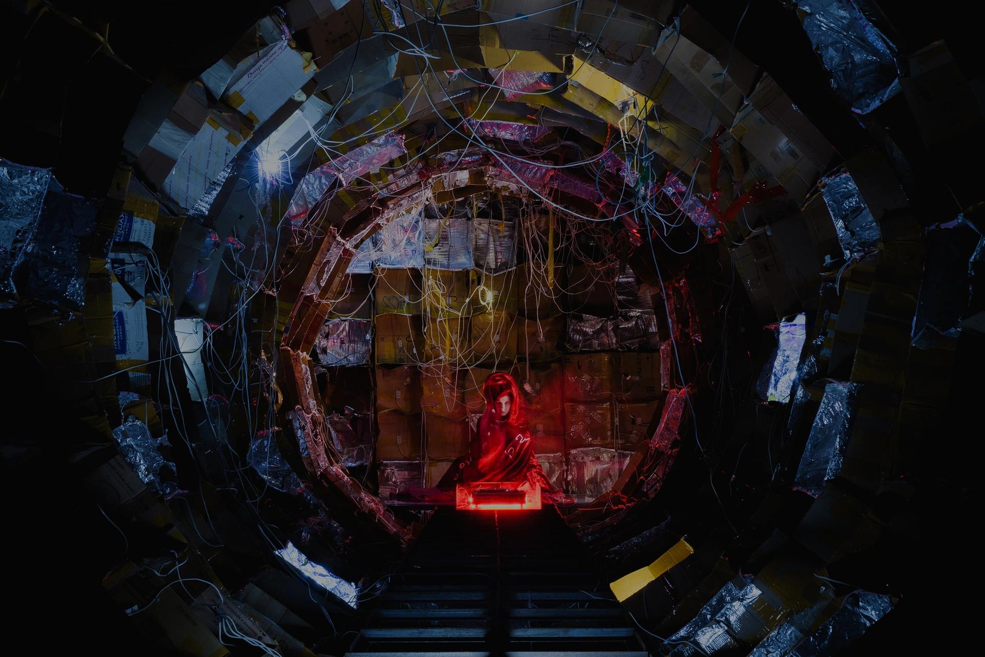 ORTA collective,Alexandra Morozova inside the Circular Cardboard-Light Generator of Genius (2022) Photo: ORTA collective © ORTA collective / Courtesy of the Artist
