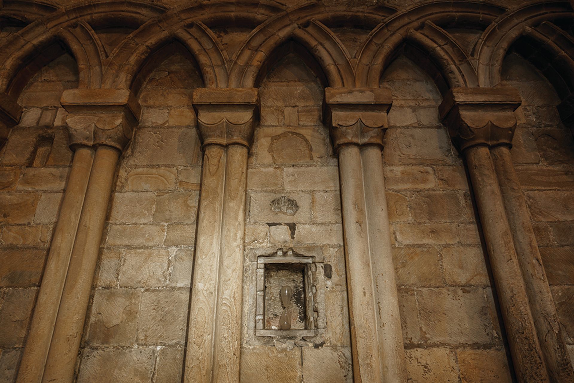 Katie Paterson's hourglasses installed in Durham Cathedral.