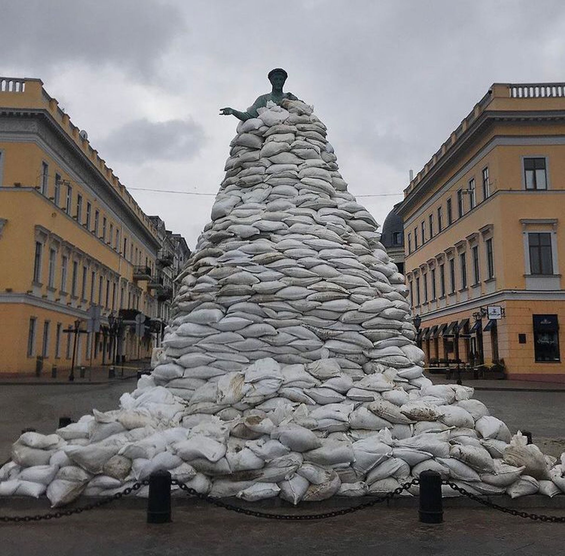 One of the monuments that has been protected with sandbags in Ukraine Photo: Yevgen Samborsky