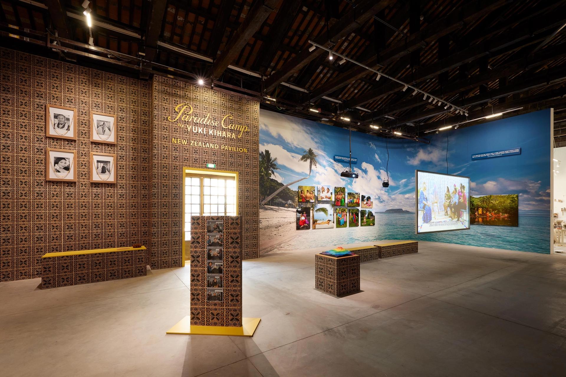An installation view of Yuki Kihara's Paradise Camp in the New Zealand Pavilion Photo: Luke Walker