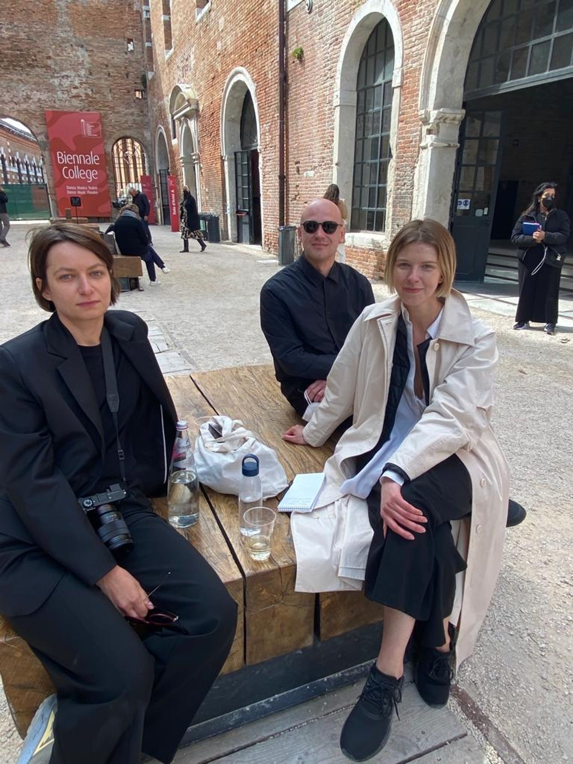 From left: the Ukrainian pavilion architects Iryna Miroshynykova and Oleksiy Petrov with the curator Maria Lanko Photo: Linda Yablonksy