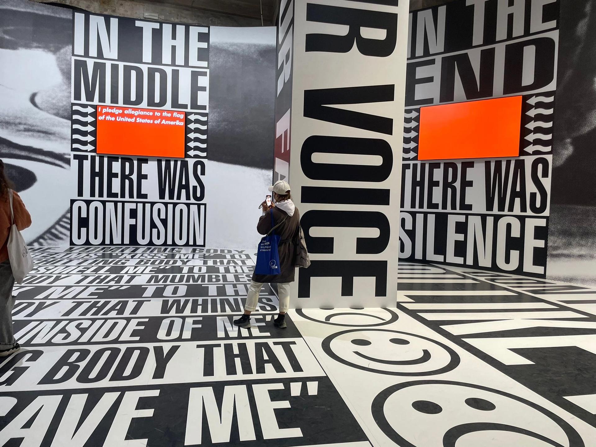 Barbara Kruger's Untitled (Beginning/Middle/End, 2022) installation at the Venice Biennale's main exhibition Milk of Dreams Photo: Aimee Dawson