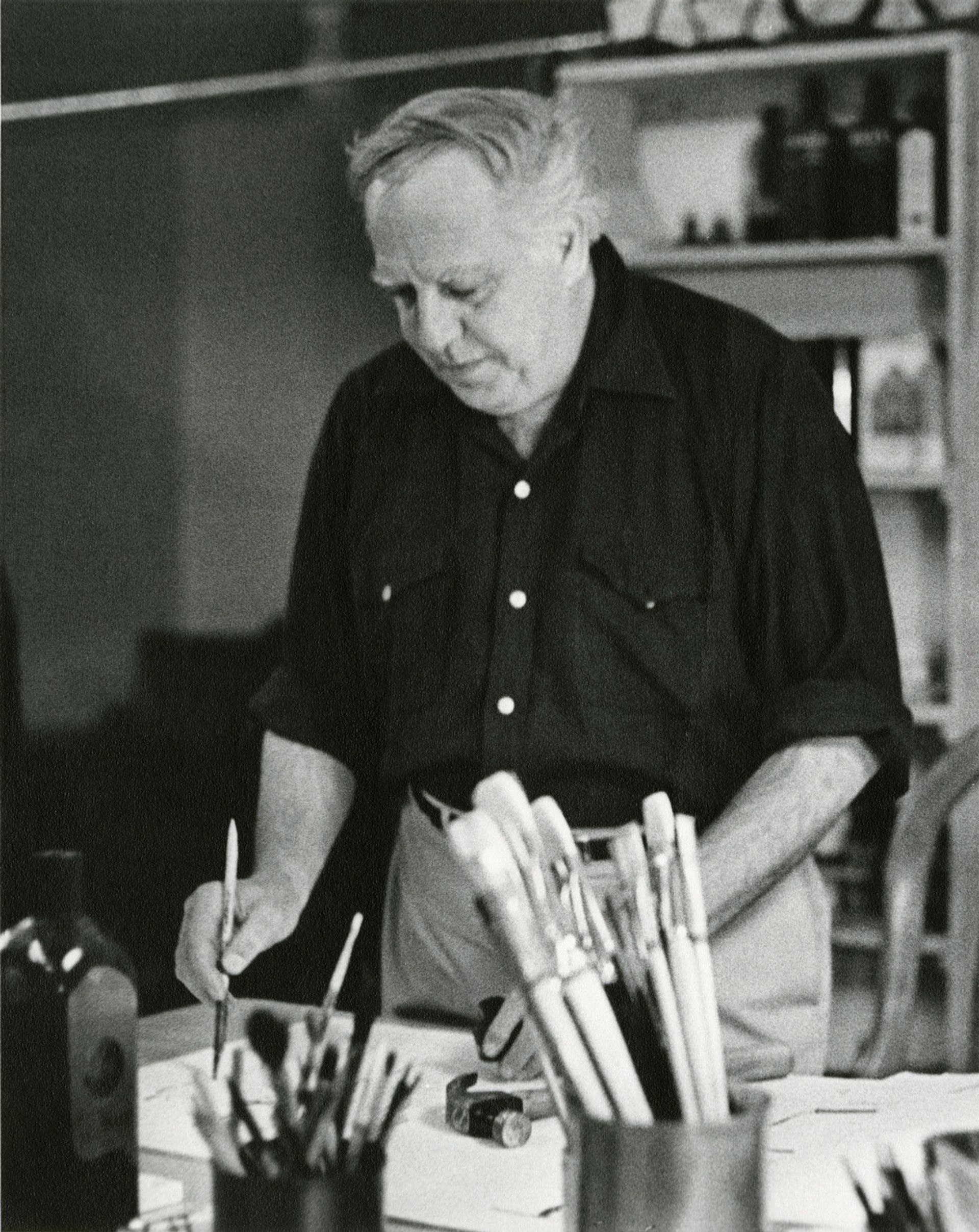 Philip Guston in his studio in 1970 Photo: Frank K. Lloyd, Courtesy of the Guston Foundation and Museum of Fine Arts, Boston