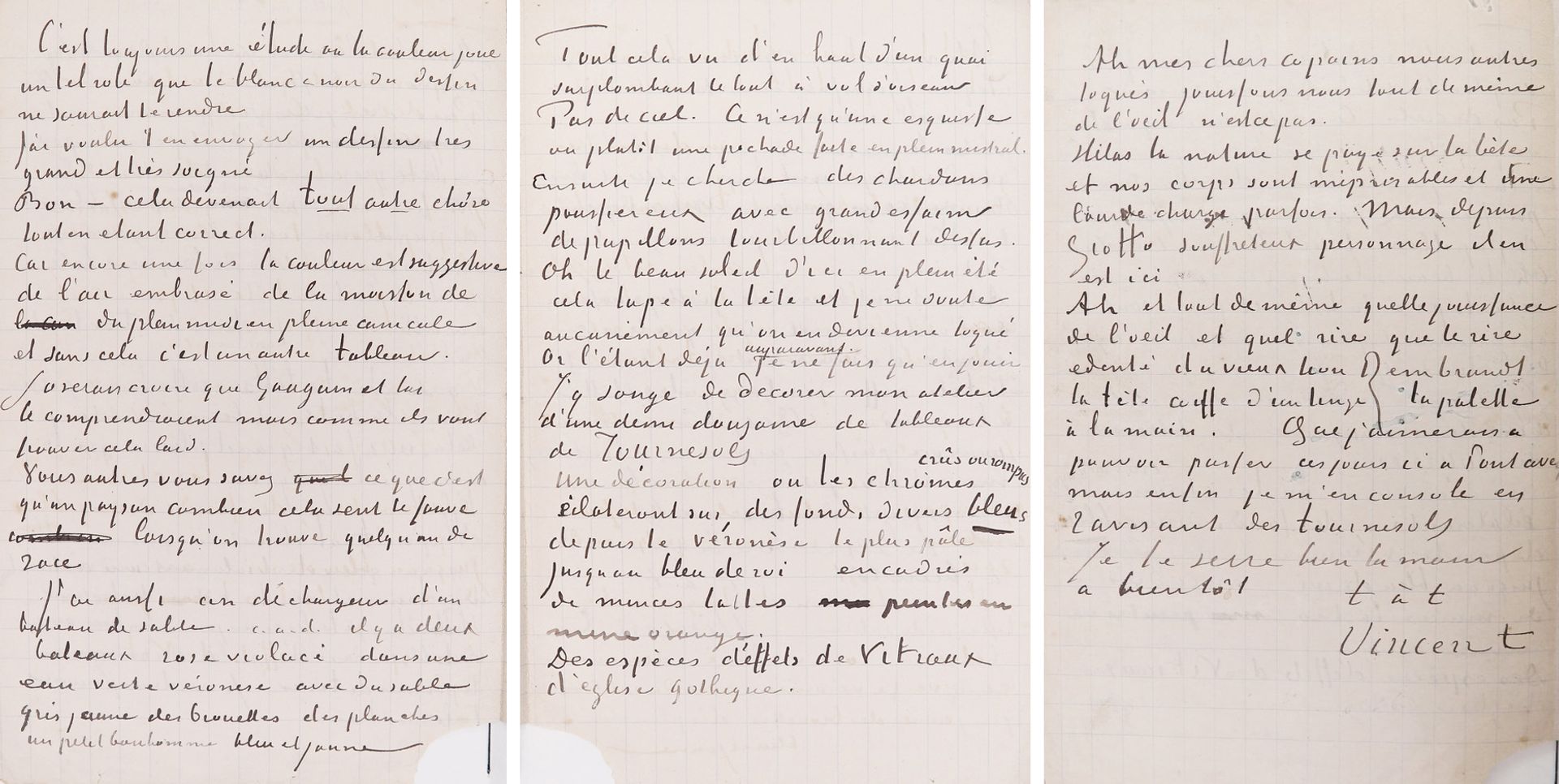 The second, third and final page of Van Gogh’s letter to Emile Bernard, around 21 August 1888 Credit: Collection of Anne-Marie Springer