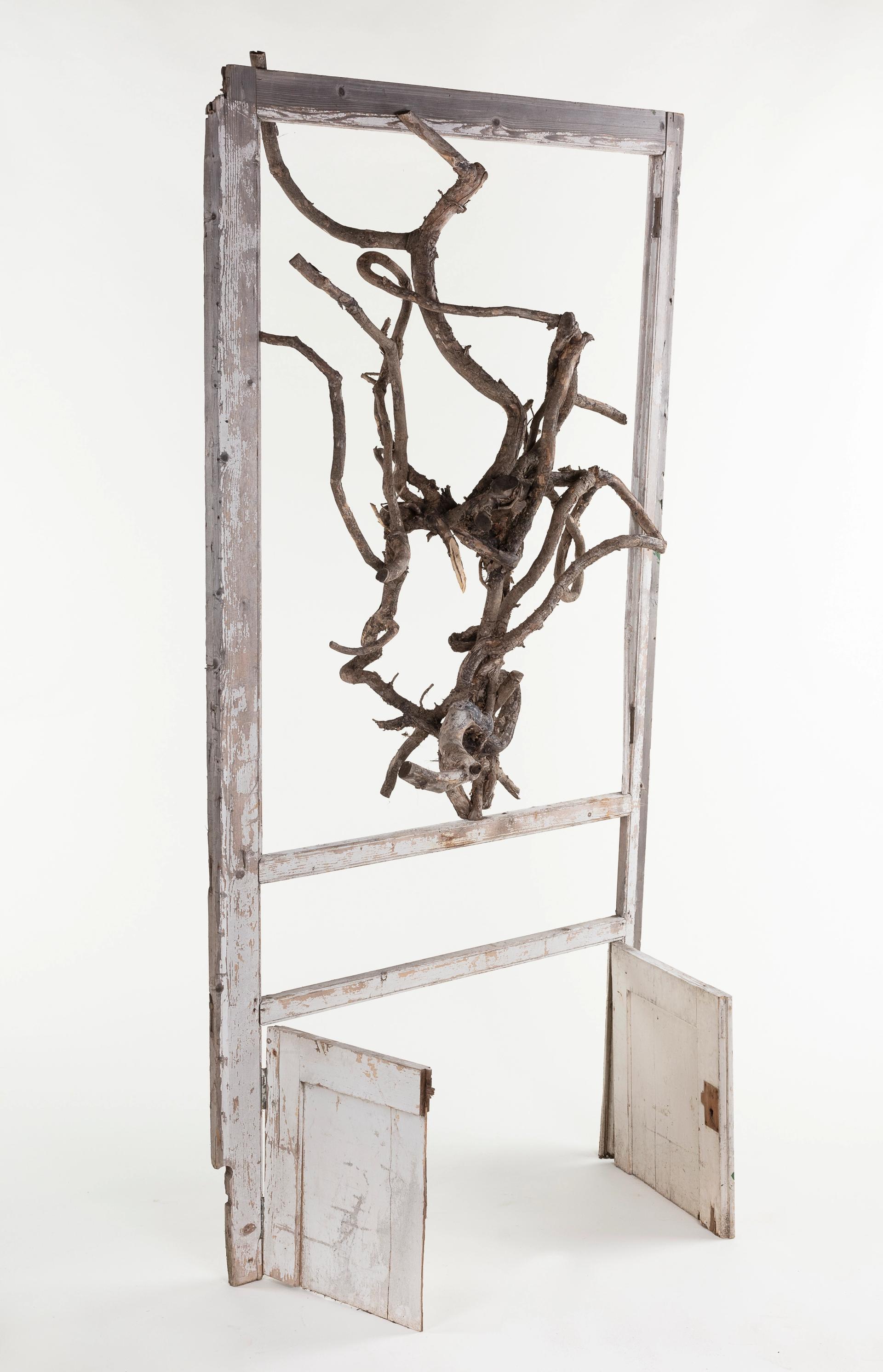 Lonnie Holley's I Knew They Were Mine (2020), made from a wooden doorframe and tree roots