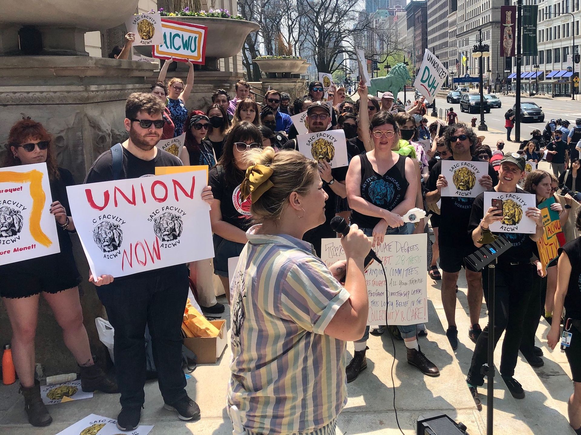 The May 10 rally in favour of the non-tenured faculty union at the School of the Art Institute of Chicago Photo courtesy AICWU/AFSCME