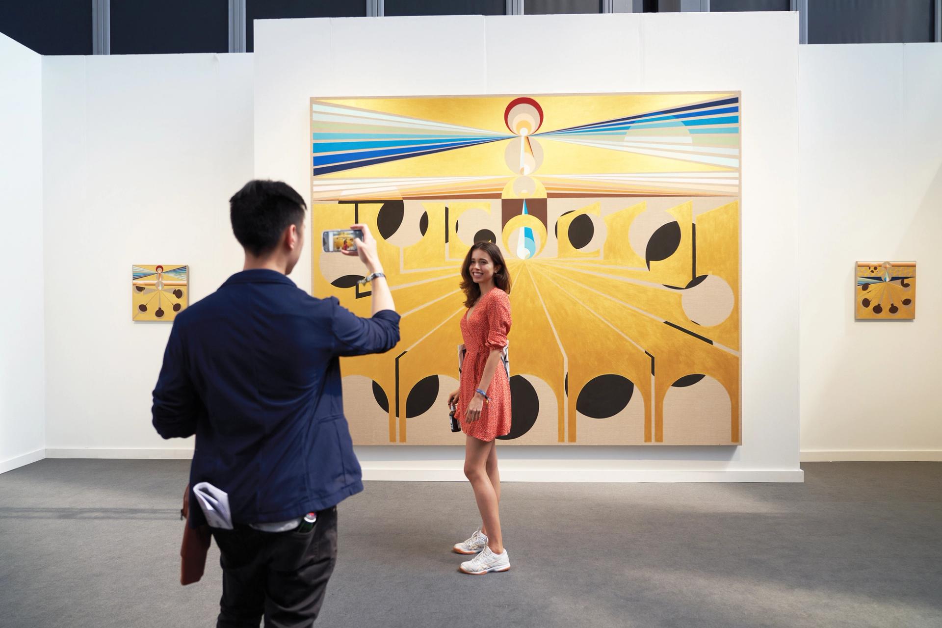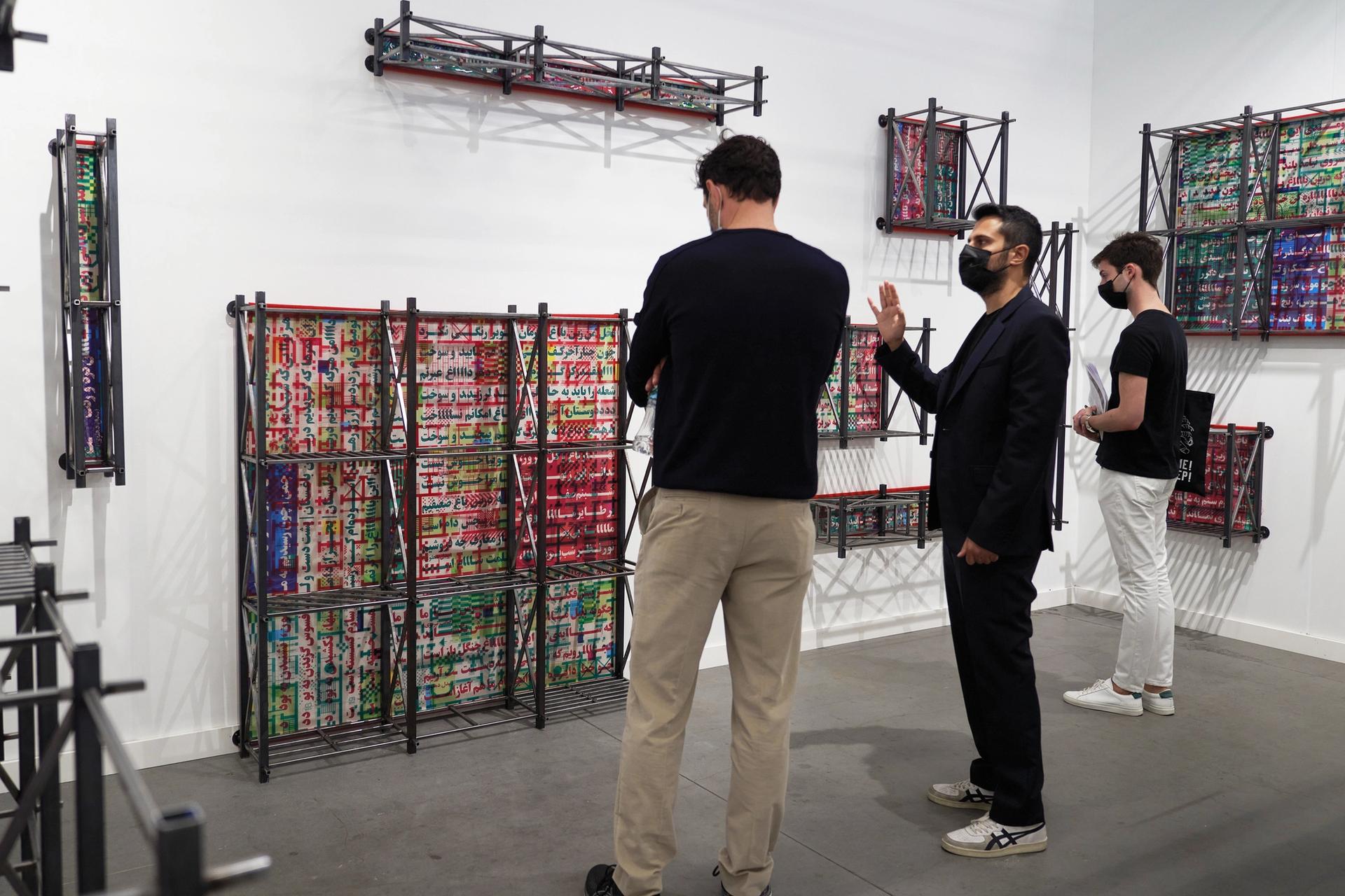 “The beauty of art fairs is learning about more global practices. Delvaray has a graphic design background, visible in this work, which has to do with the idea of the Persian garden and how that is a construct. She’s deconstructing that garden we all have in our minds, breaking down its components and elements.”