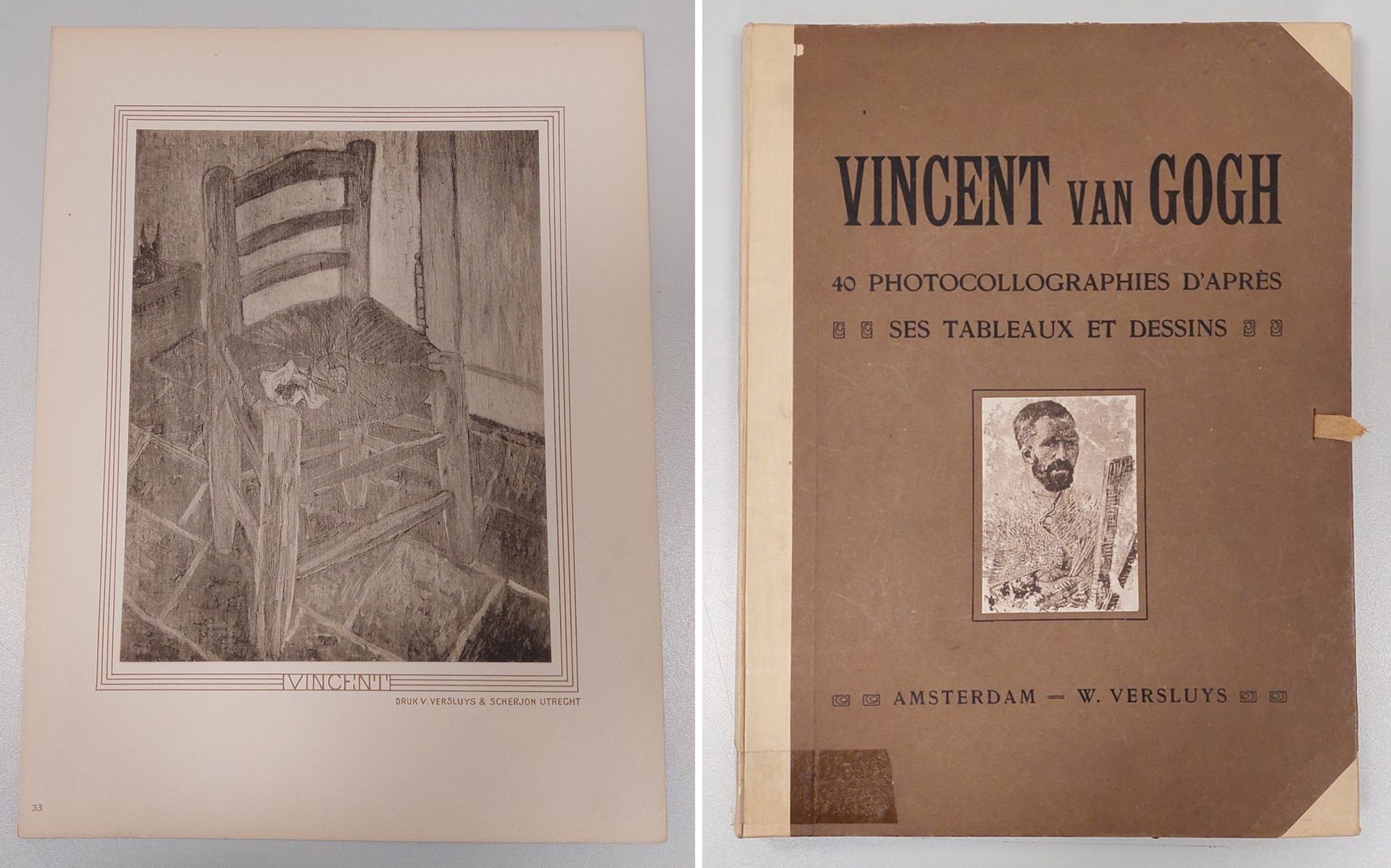 Reproduction of Van Gogh’s Chair and cover of Vincent van Gogh: 40 Photocollographies d’après ses Tableaux et Dessins, Amsterdam (1905) Credit: Van Gogh Museum, Amsterdam