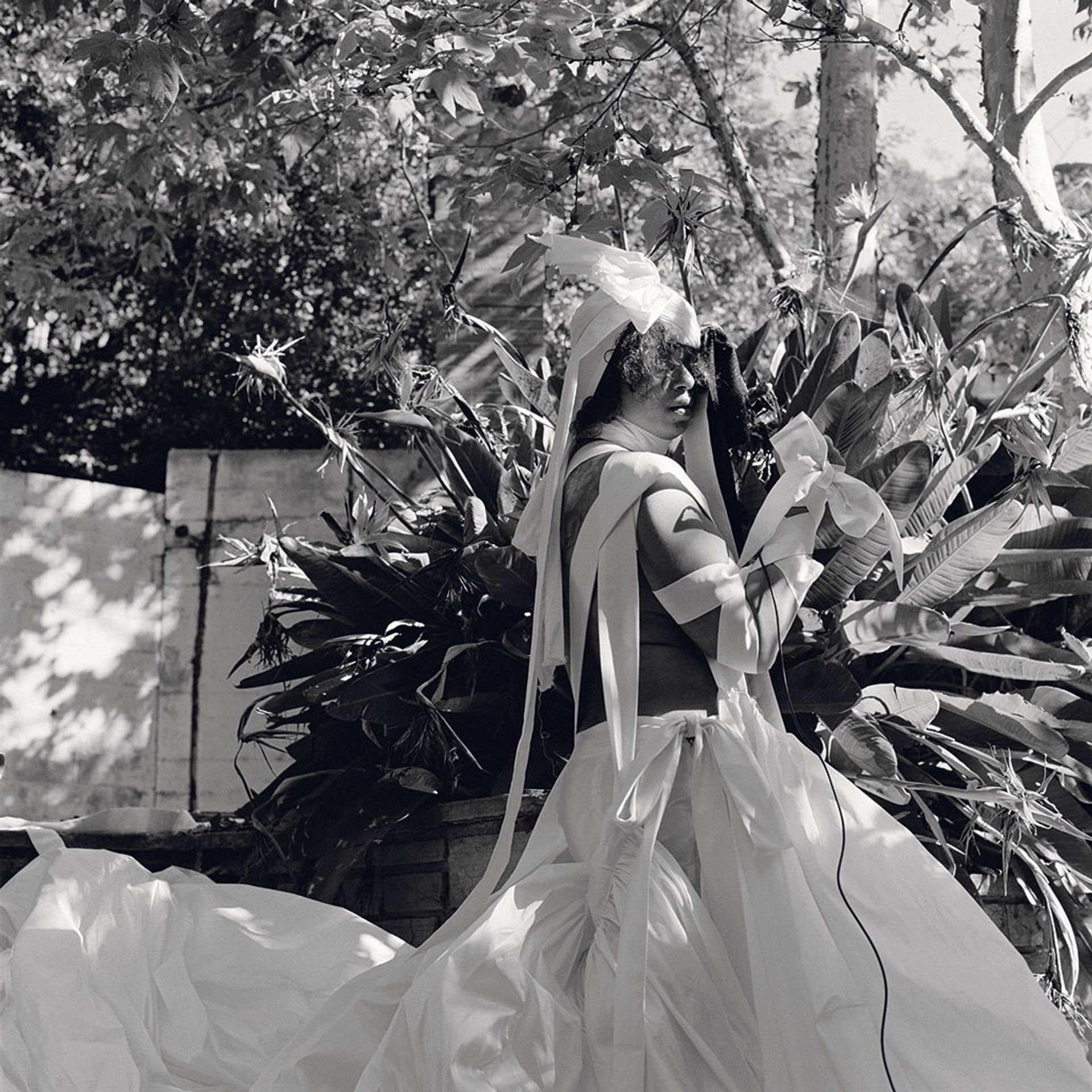 The Beverly Hills Hotel image is the centrepiece of a presentation that also features black-and-white self-portraits Tourmaline shot amid the remnants of the Roberts House Ranch, a home designed by Williams in the hills overlooking Malibu that burned down in a 1982 wildfire. In those images she is partially concealed, wrapped in a sprawling white dress. Ahead of the fair, the artist discussed what attracted her to these sites, and how her interest in Williams’s buildings dovetails with her works foregrounding the experiences of Black, queer and trans individuals and communities.