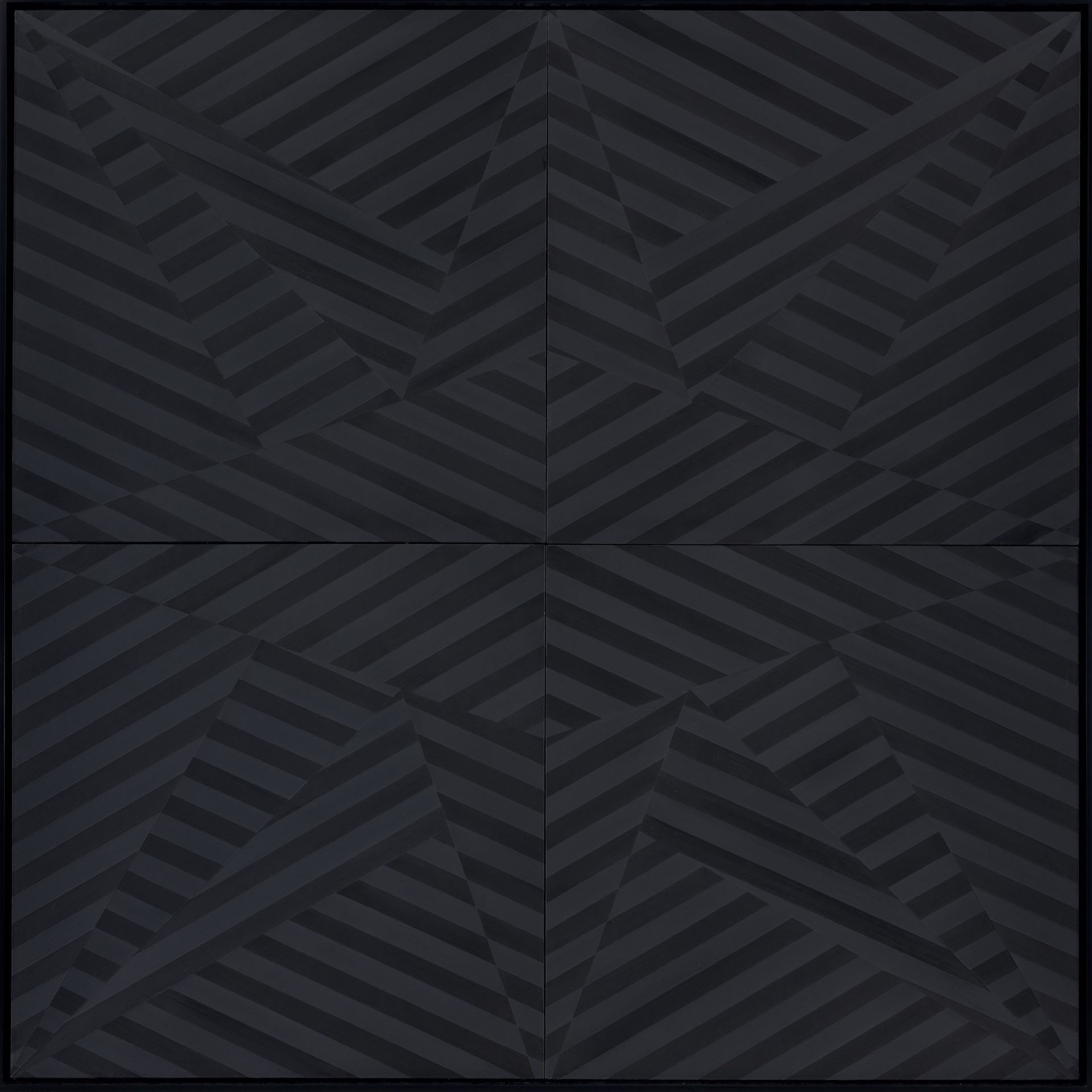 Some of Little’s earlier works speak to the artist’s interest in colour and craft. El-Shabazz (C) (1985), for instance, depicts four pastel-coloured triangles that intersect at a single point. The lines in this painting are crisp and clean; they demonstrate a diligence that undergirds his entire oeuvre. Eventually, others took note of Little’s attention to detail and commitment to his singular brand of abstraction. He started showing with New York’s June Kelly Gallery in 1988 and has works in the permanent collections of the Saint Louis Art Museum, the Studio Museum in Harlem and the Menil Collection in Houston.