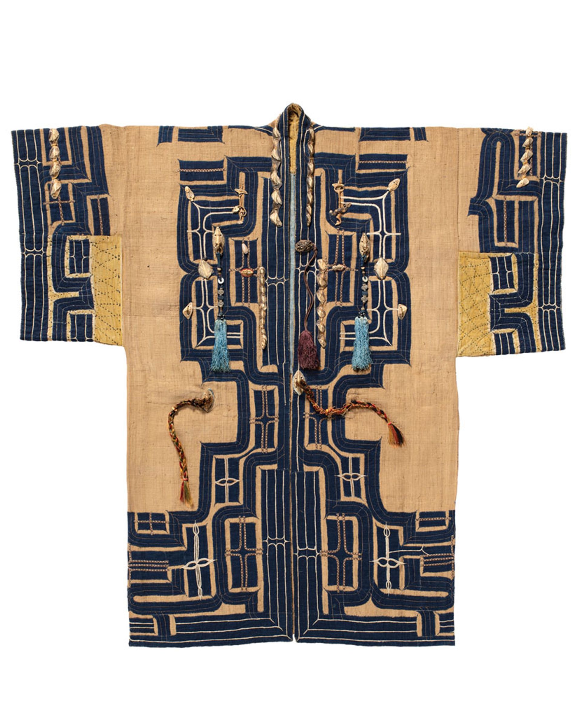 An 18th century Japanese attush robe made from various materials including fish bones, elm bark fiber, wool, sturgeon scales, shells, bird bones and silk Mary Griggs Burke Endowment Fund; purchase from the Thomas Murray Collection 2022