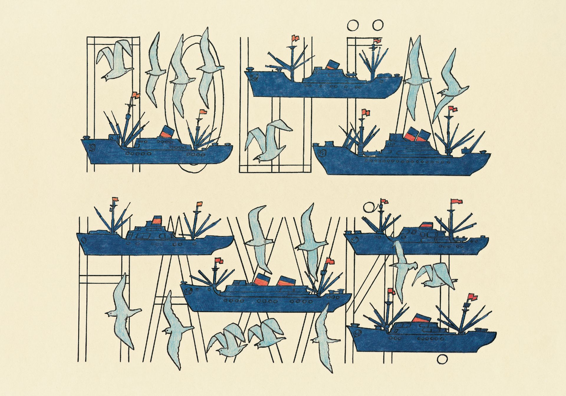 The Art Newspaper: One of Ilya’s drawings of ships, which has "go fuck yourself" written in Russian in the background, has become a sort of meme during the war in Ukraine. It has been used to represent the famous incident at Snake Island in the Black Sea in February in which defiant Ukrainian sailors declared: “Russian warship, go fuck yourself.” Ilya's image, created decades ago, began to circulate widely online after a recording of the standoff went viral. Can you tell us about that?