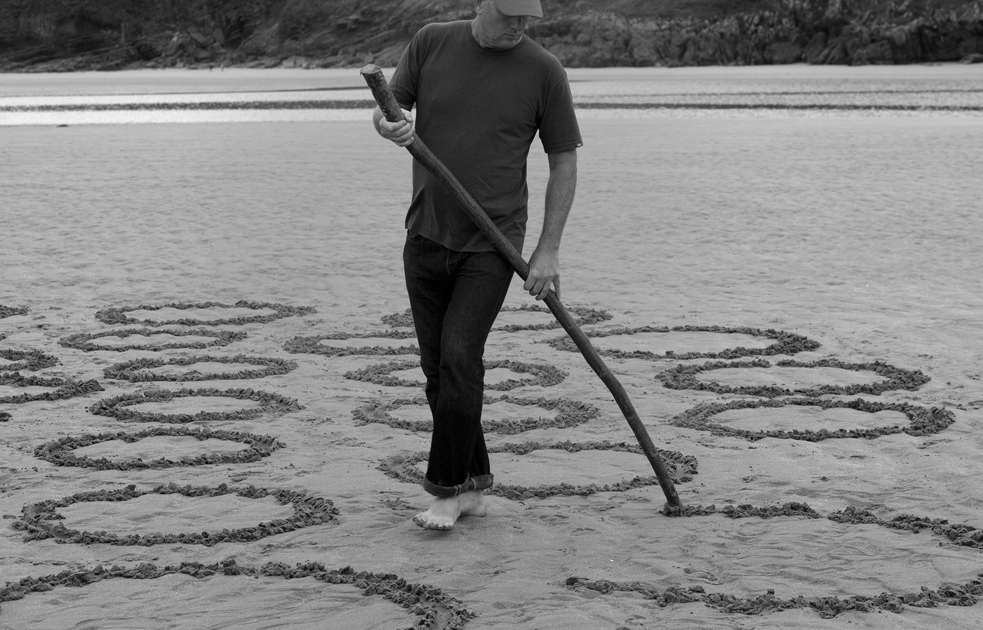 I made some rules for myself at first, including that the drawings would be freehand and that I would use only a stick. I always threw away the stick. Sometimes it washed up on the beach the next day and I used the same stick, but it was always thrown away again. I would go down there with nothing, find the stick, make the composition and sometimes take pictures and sometimes not—but always throw away the stick. I’m in no hurry to become “good” at or master a drawing. I handle it very slowly and even just the walking and the physical part of the process becomes as interesting as the visual result. The physical motions are just as significant as what might be seen from a finished composition.