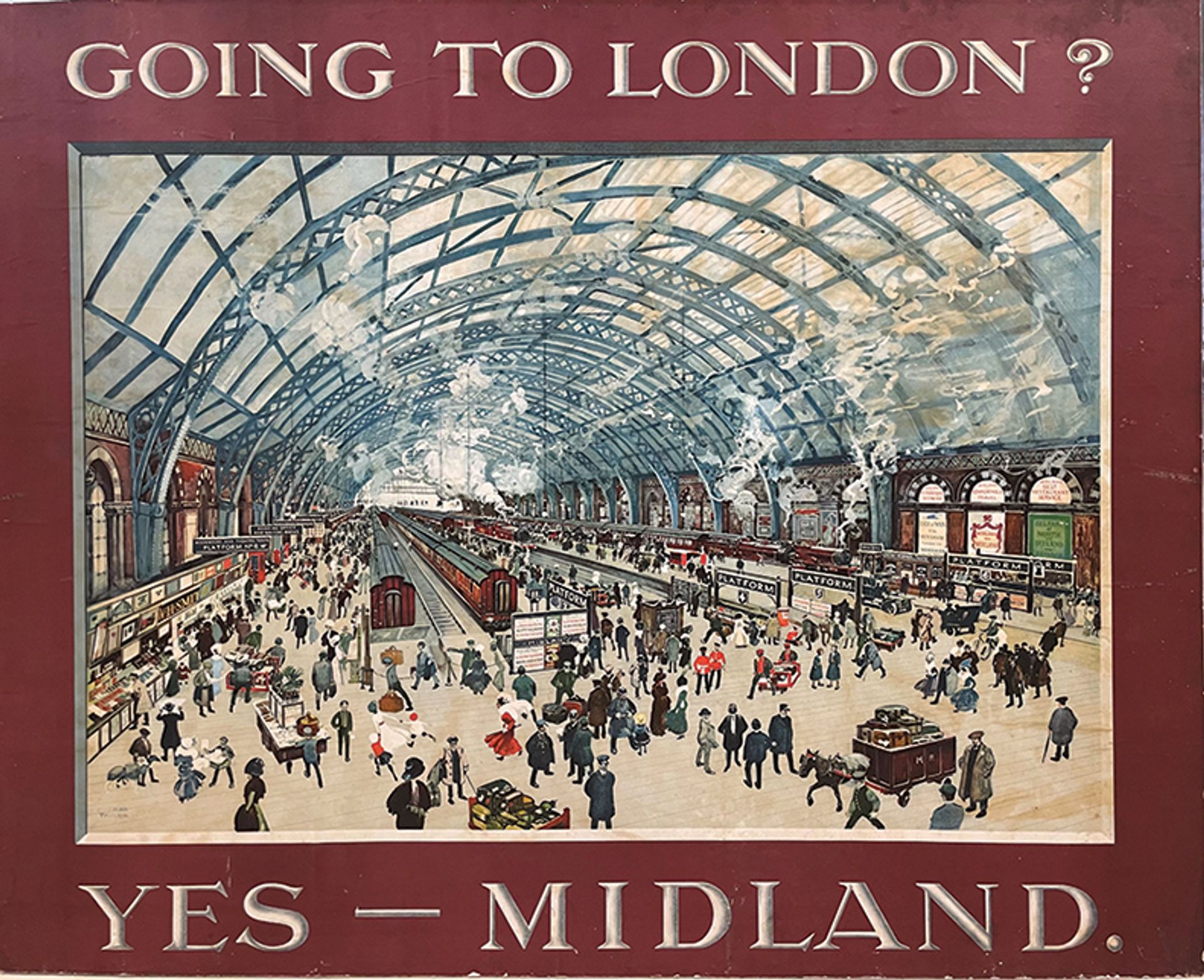 “Obviously the massive, seven-tonne Rolls-Royce Trent jet engine is the legendary object in the museum’s Civic Hall but I also like this poster of the Midland Railway up in the Railways Revealed gallery depicting St Pancras station in around 1910 (inset, below). In the artwork, there’s the canopy of St Pancras, which was made in Derby. The iron roof frame was done by Andrew Handyside’s foundry in the city, most of the locomotives and rolling stock would have been made in the Midland Railway Locomotive Works in Derby and many of the people would have probably been [travelling] from Derby as well. So the picture is of a landmark station in London, but everything was made in Derby.”