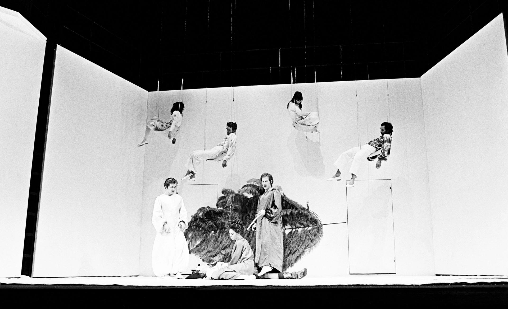 Peter Brook's 1970 staging of Shakespeare's A Midsummer Night's Dream, designed by Sally Jacobs and performed at the Royal Shakespeare Theatre in Stratford-upon-Avon Photo: Donald Cooper / Alamy Stock Photo