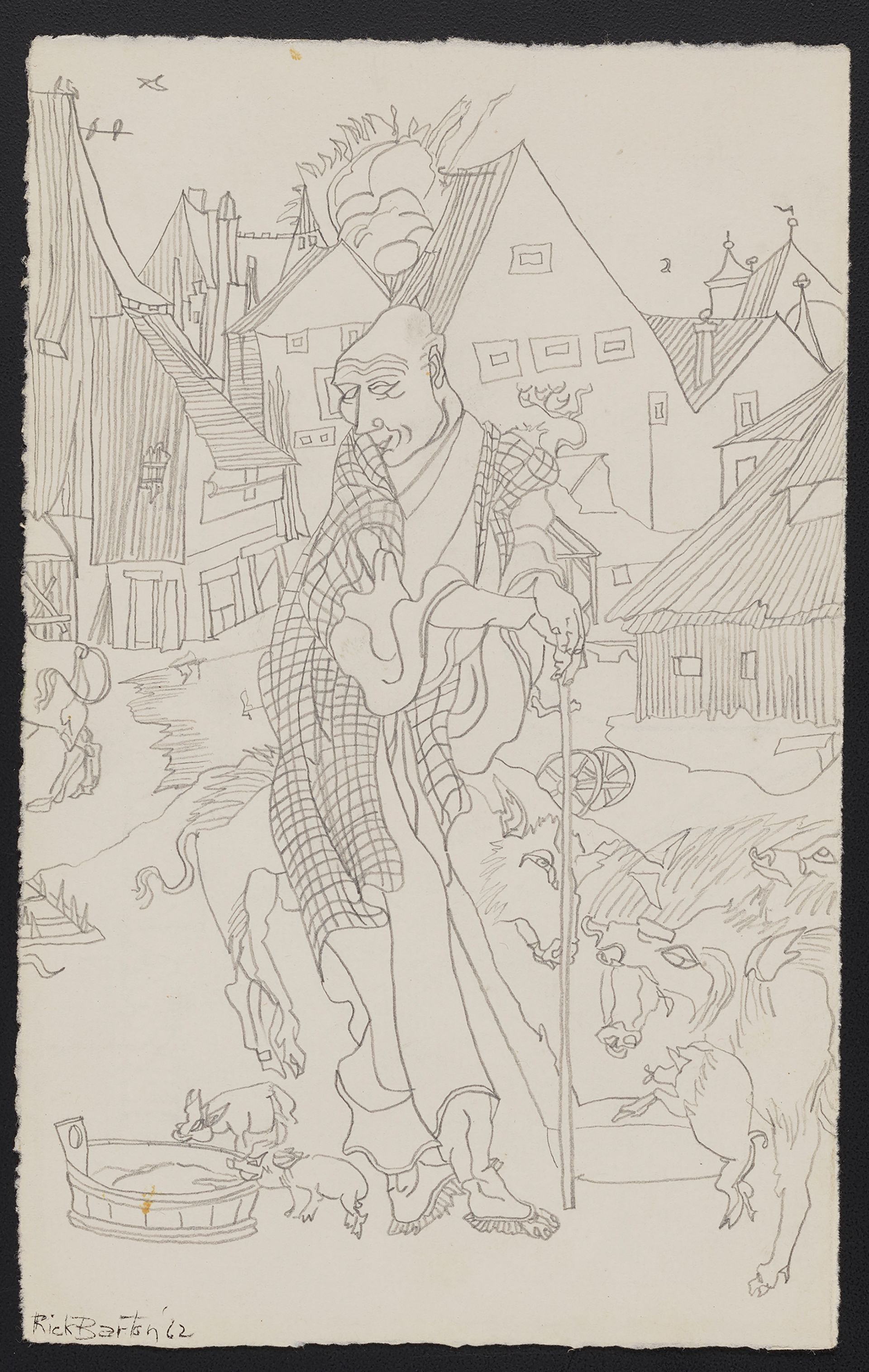 Rick Barton, Untitled [After Dürer and Hokusai], 1962. Rick Barton papers, UCLA Library Special Collections, Charles E. Young Research Library, University of California, Los Angeles.